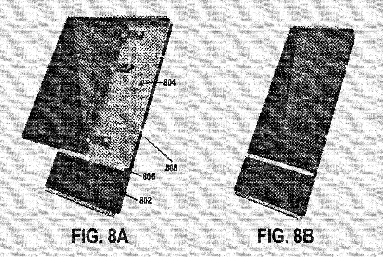 Мы писали об этой заявке Apple еще в 2022 году в рамках цикла статей «Патентный ландшафт». На сегодня эта заявка компанией заброшена, и работы над ее восстановлением не ведутся. Видимо, не такое уж перспективное направление. Суть заявки в том, что вместо гибких дисплеев компания предлагает составной. Работать, по их мнению, это должно как-то вот так: