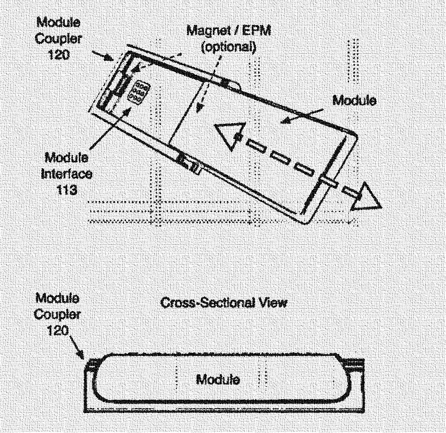 По иллюстрации выше можно понять, что в ранних версиях предполагалось использовать установку модулей на основе направляющих. Google даже получила несколько патентов на совершенно конкретную форму боковых граней модулей и, собственно, тех самых направляющих. Но до реализации в грубом прототипе дошел другой вариант. Все дело в том, что модули планировалось удерживать посредством магнитов.