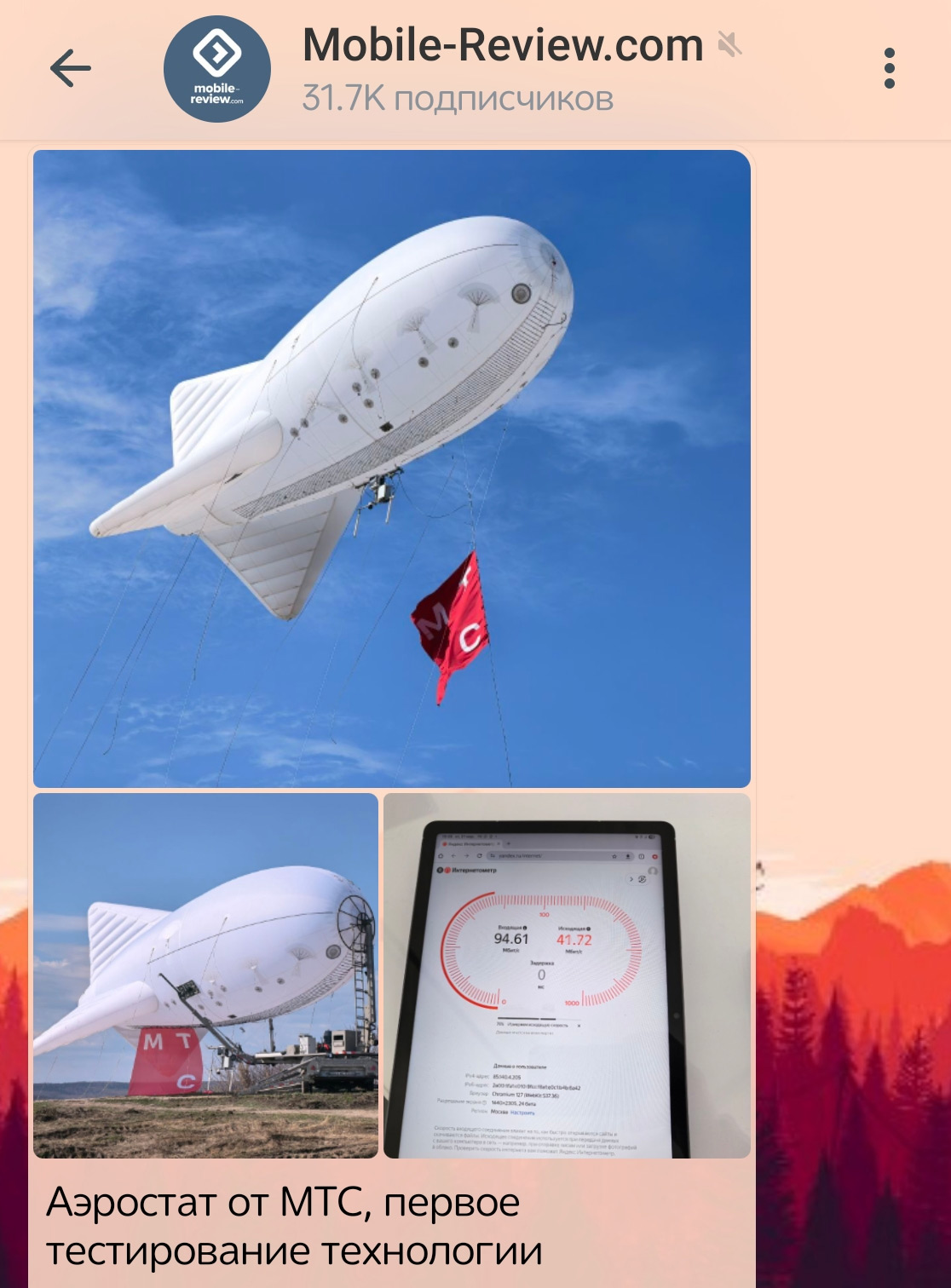 Буквально на днях у нас на канале в Telegram была новость о том, что МТС запустили аэростат с базовой станцией LTE. Пишу текст 31 марта, поэтому вот вам скриншот на случай, если 1 апреля доступ к мессенджеру все же закроют: