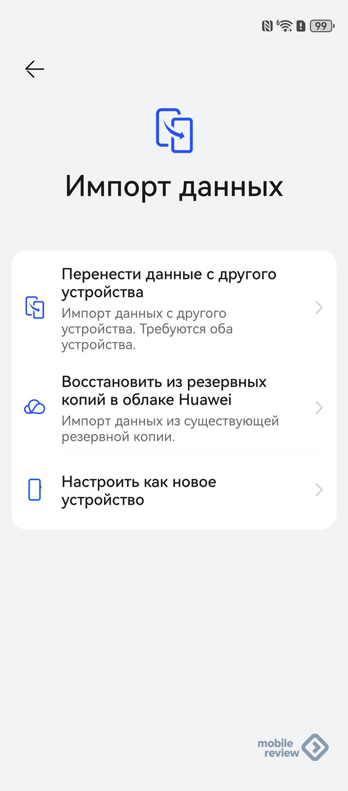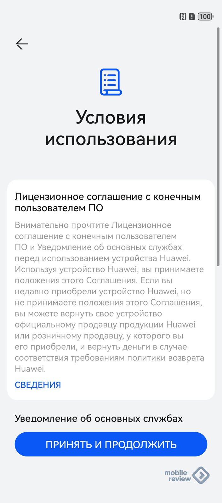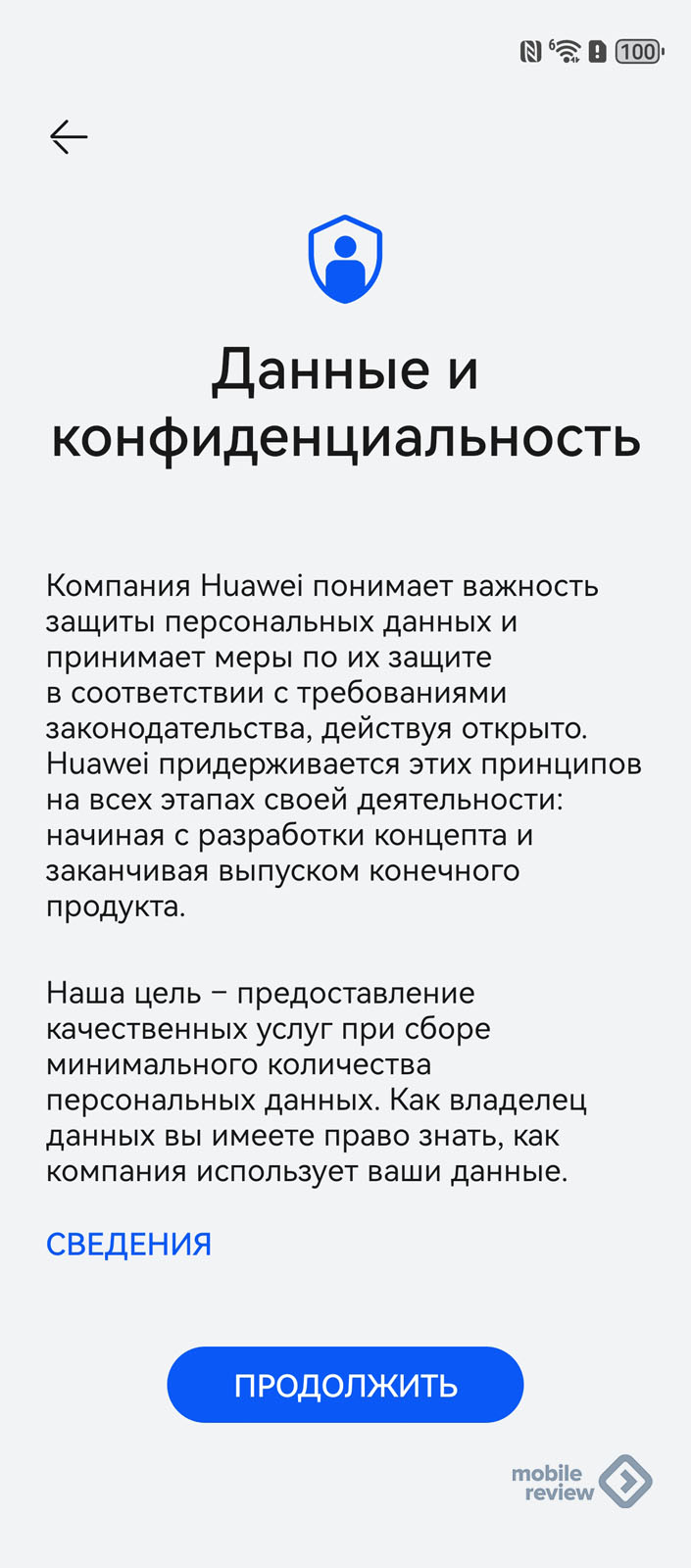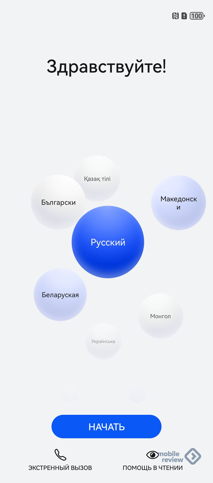 Первичные экраны настройки ничем не отличаются от Android или iOS. Разве что можно отметить, что HUAWEI чуть креативнее оформила экран выбора языка.