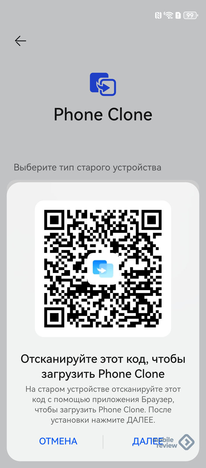 Однако у HUAWEI есть механизм переноса данных с другого смартфона — с iOS, Android или HUAWEI. Перенесём данные с Android. Нужно отсканировать QR‑код и скачать приложение Phone Clone. По умолчанию HUAWEI предложит установить на ваш старый смартфон магазин AppGallery, но чуть ниже будет вариант скачать APK‑файл и установить его. После установки Phone Clone запросит множество разрешений — они нужны, чтобы приложение смогло всё скопировать и перенести на новый смартфон.