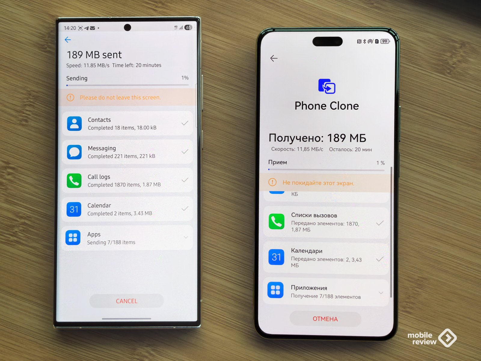 Дальше начнётся передача данных. Её продолжительность зависит от объёма, который надо перенести. Обычно это занимает около часа, а то и больше. Скорость примерно одинаковая у всех производителей смартфонов.