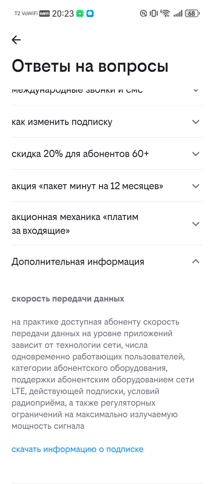 И вот наконец-то в самом низу экрана находится вкладка «Дополнительная информация», где и предлагается скачать «Информацию о подписке». Самый важный и нужный документ, в котором теоретически должны быть ответы на все вопросы, засунут максимально глубоко.