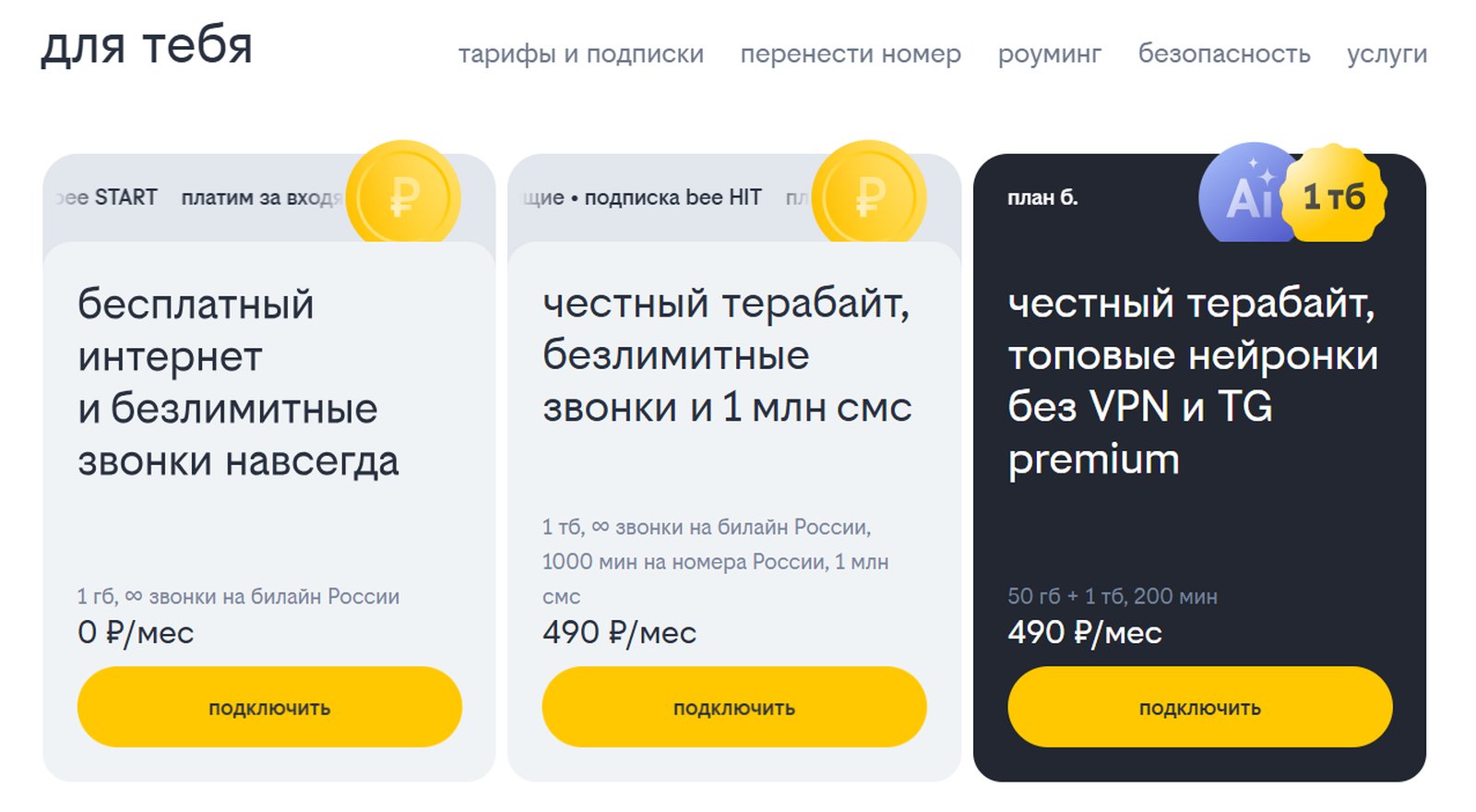 Но, может, это я бурчу. А зумеры и поколение альфа, наоборот, все отлично сразу понимают. И им термин «подписка» ближе, чем тариф. Рассказывайте в комментариях о своих впечатлениях от сайта билайна.