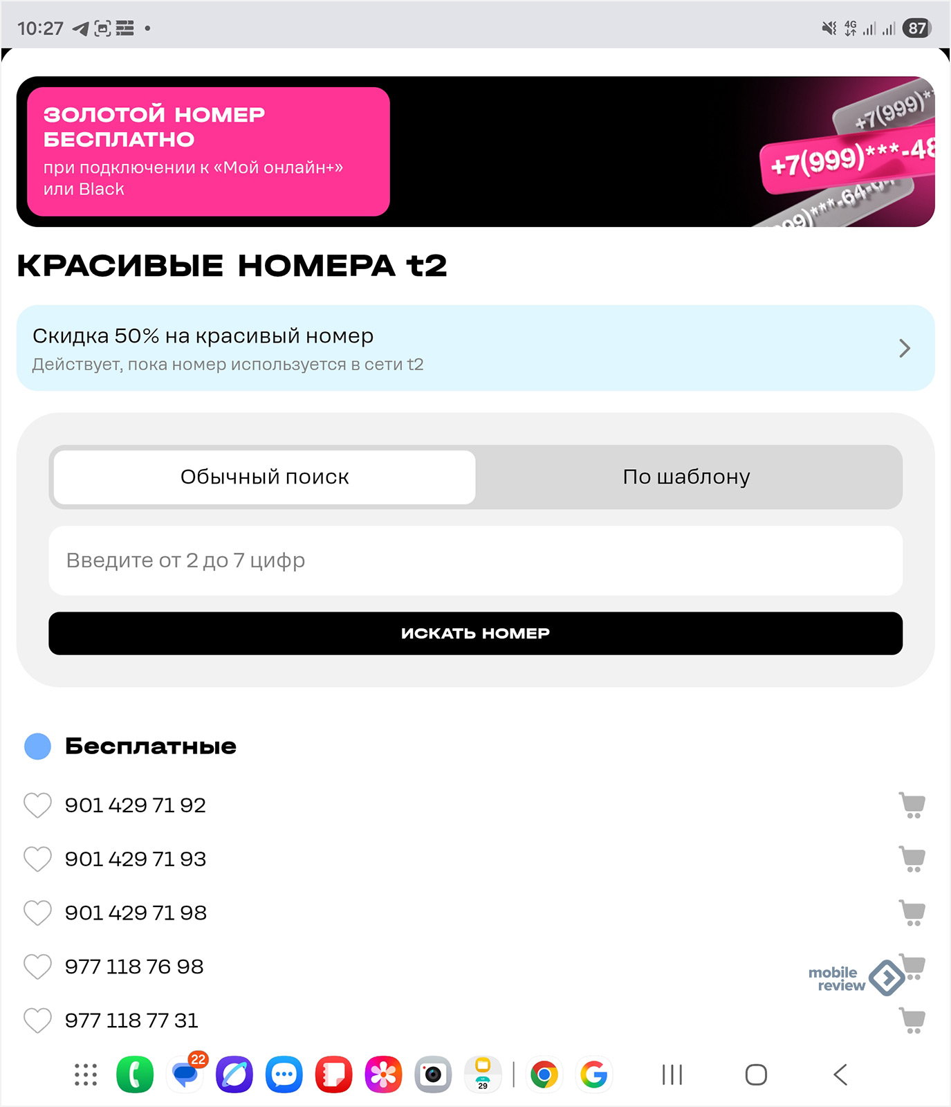 Поскольку красивый номер стал товаром, а операторы достаточно ожесточенно конкурируют, периодически они проводят маркетинговые акции – временно снижают стоимость таких номеров или придумывают иную механику. Например, в T2 предлагают купить платиновый номер (посмотрите на скриншот, чтобы понимать, какие это номера) со скидкой 50%. Абонент при заключении договора подписывает отдельное соглашение, получает скидку в половину цены (номер стоит 30 тысяч рублей, но вы платите половину). Иногда оператор и вовсе раздает такие номера без оплаты, скидка на красивый номер составляет 100%, но при уходе к другому оператору действуют ровно те же условия.
