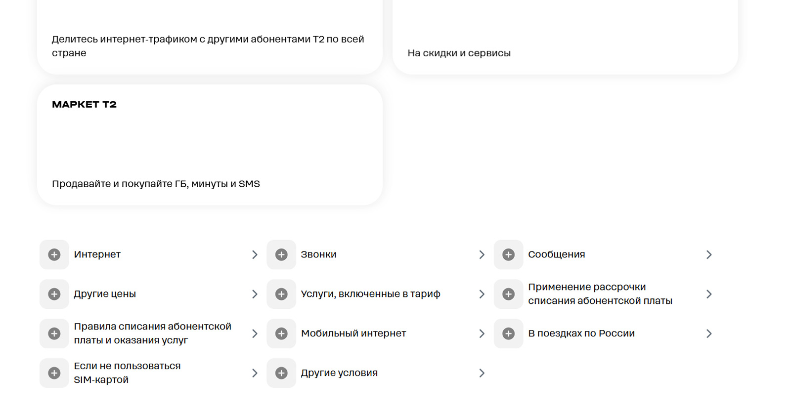 Тариф хороший, но есть за что Т2 и пожурить. Например, мне не нравится, как оператор «чисто и прозрачно» оформляет описание тарифов. Например, чтобы узнать, сколько стоят звонки на номера других операторов, приходится прокрутить все экраны вниз и выбрать вкладку «Звонки». И только там указано, что у абонента есть пакет 200 минут на остальные МОБИЛЬНЫЕ номера. А чтобы узнать, сколько же стоит звонить на городские номера (да и на мобильные после исчерпания пакета), надо открыть вкладку «Другие цены». Мне не нравится, что приходится прям вдумчиво разбираться и лазить по разным вкладкам.