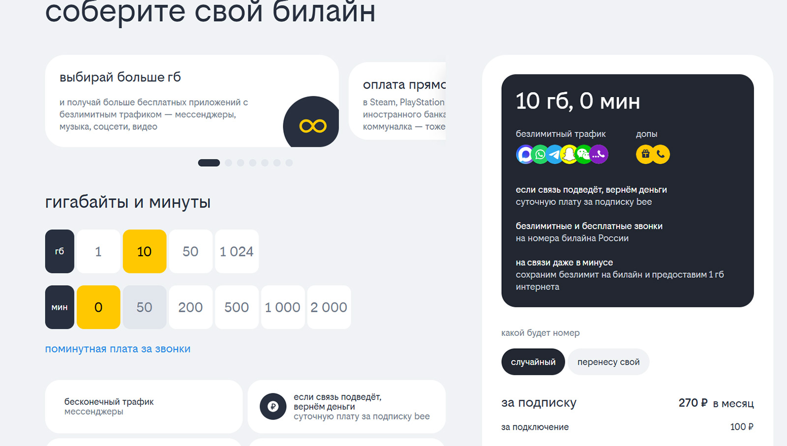 В тарифе маловато минут на номера других операторов, зато есть безлимит на мессенджеры и номера билайна.