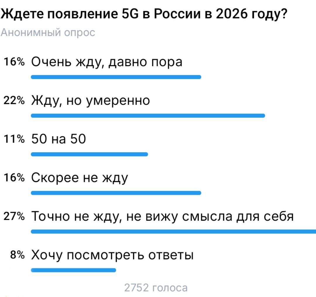 Мы провели небольшой опрос, в котором задали вопрос, насколько люди ждут появления 5G в России, найти его можно вот тут.