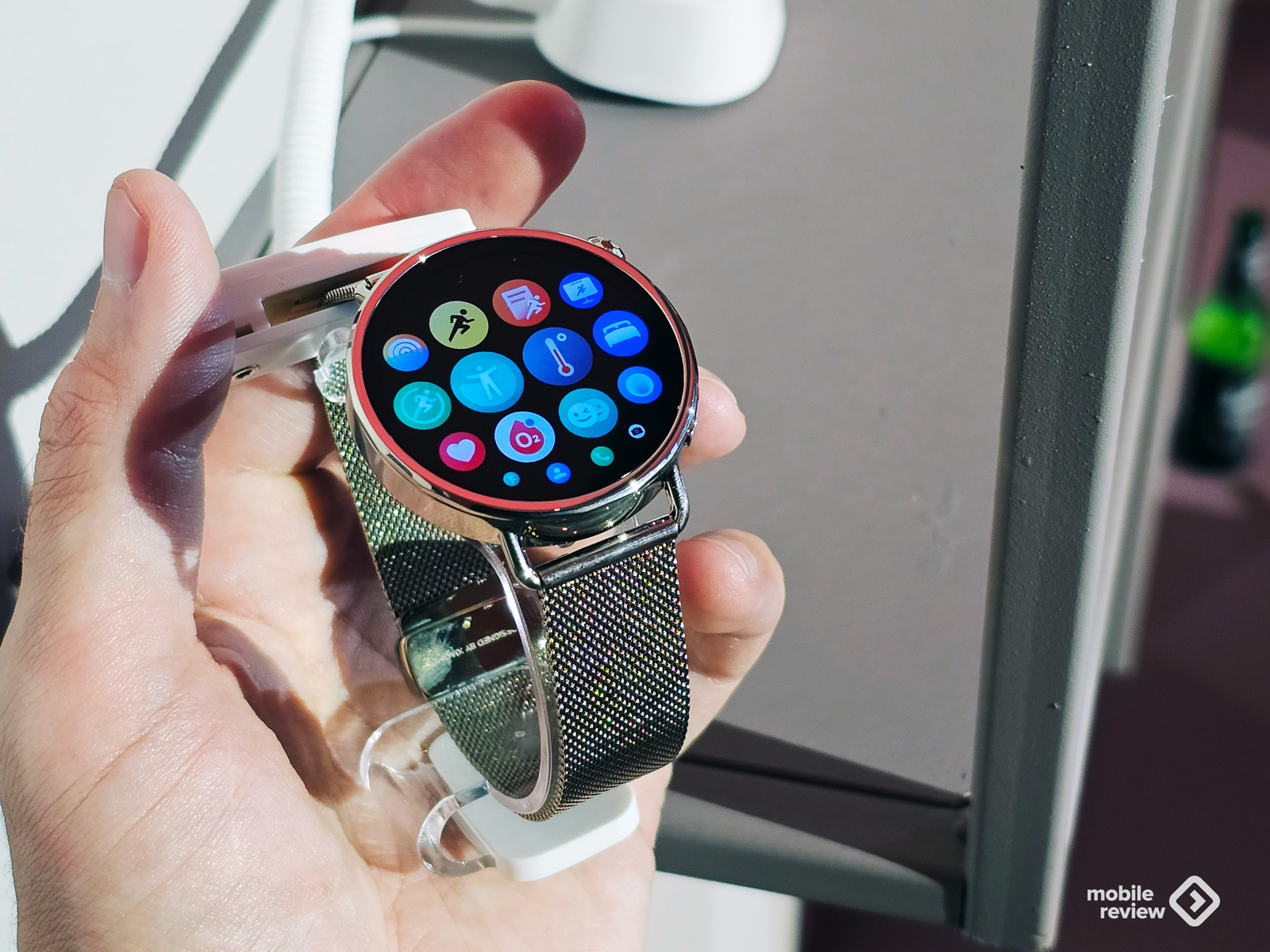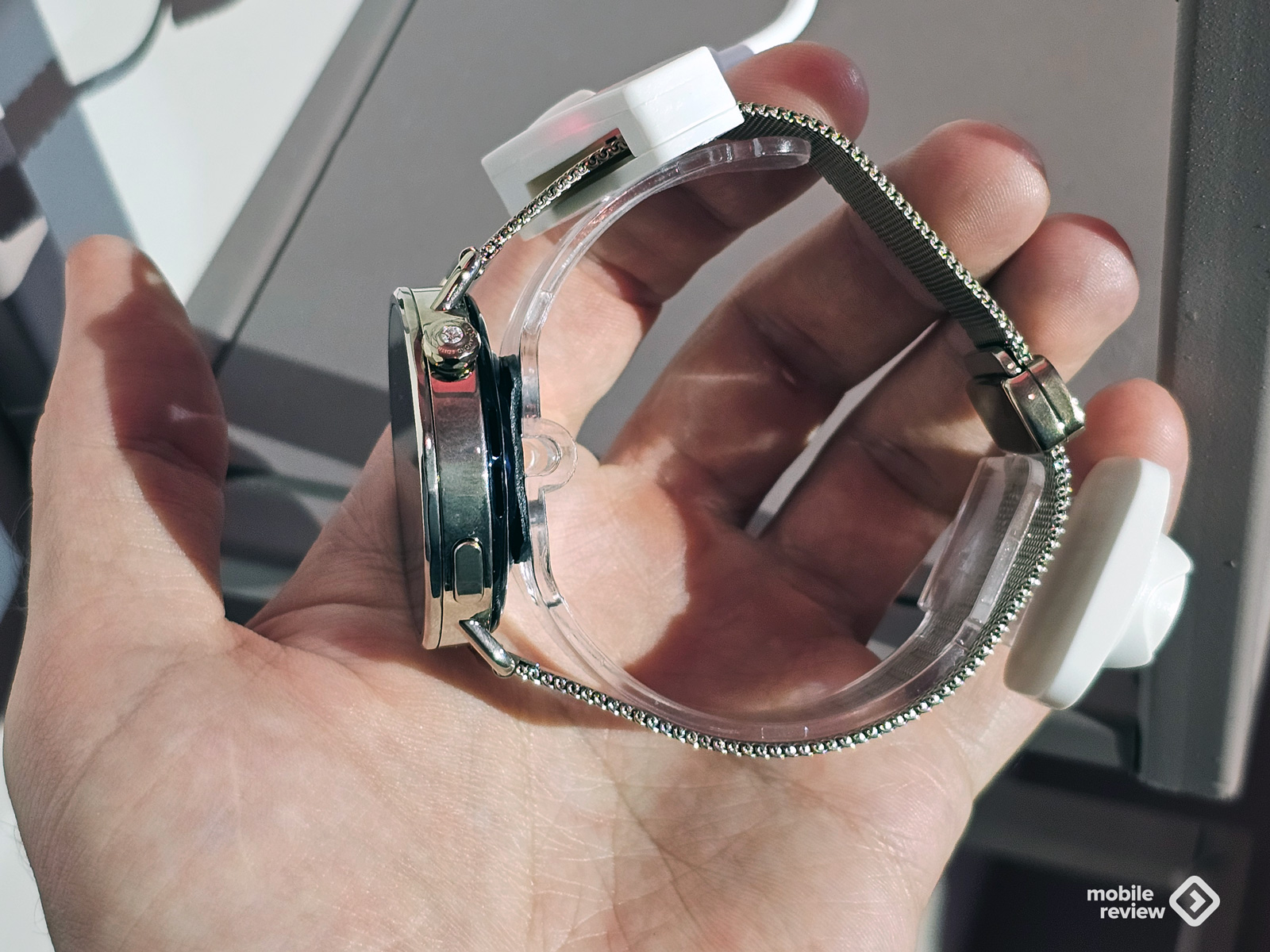 Гаджеты получились стильными. И отлично подойдут в качестве бижутерии. У часов есть функция измерения температуры кожи. Было неясно, где именно, но ведущий сказал, что в часы инкрустирован искусственный бриллиант.