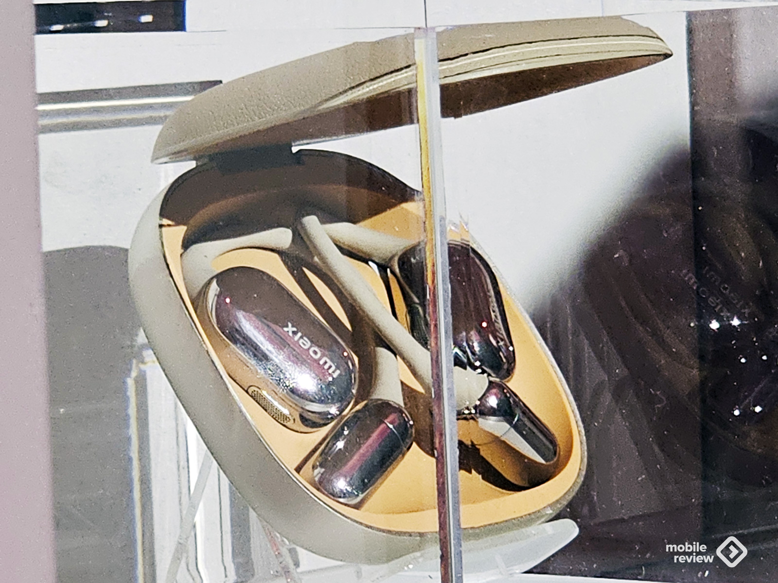 Наушники были спрятаны под стеклом, поэтому вот вам видео. Тут чехол с эко-кожей и золотые наушники. На мой взгляд, это самый сомнительный гаджет «золотой серии». Все-таки подобные наушники в первую очередь используются для спорта. Хотя сам форм-фактор рекомендую. Наушники-затычки раздражают уши. Из-за них выделяется больше ушной серы. А если не следить за гигиеной наушников, то может начаться отит. А вот Xiaomi OpenWear Stereo Pro будут меньше раздражать уши.