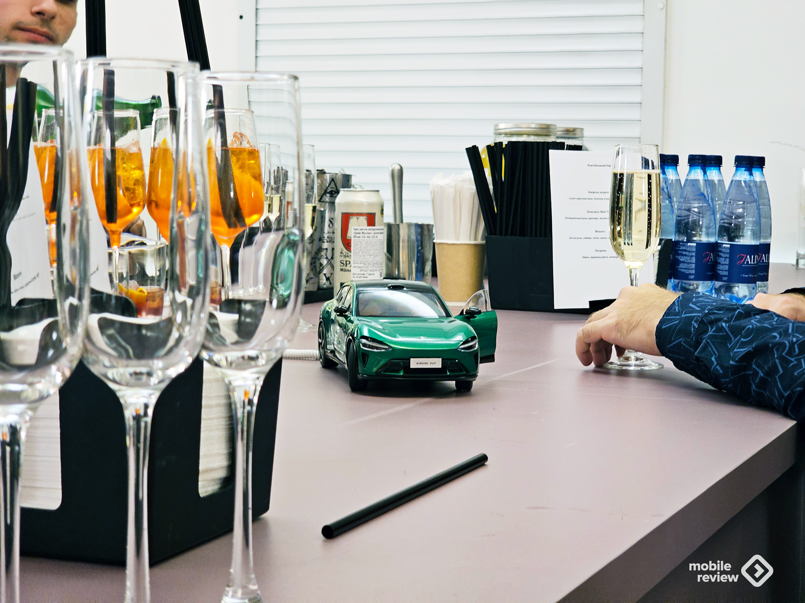 Мне очень понравилось внимание к деталям. Например, на барной стойке стоял электромобиль Xiaomi. А рядом со стойкой с продуктами расположилась панда, подсвечивающая экологические инициативы Xiaomi.
