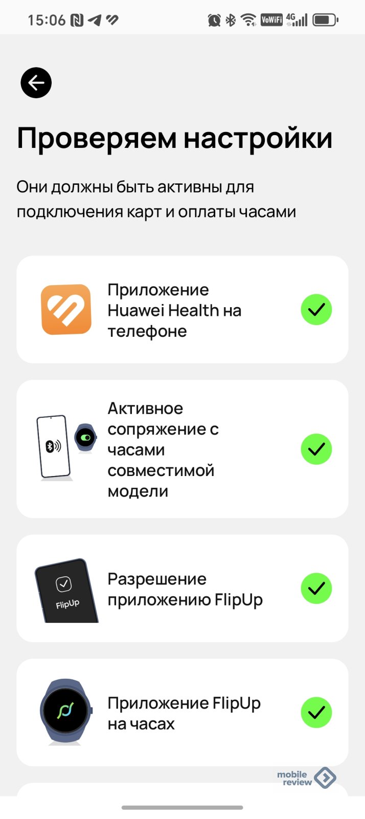 В целом, все проходит быстро и просто, единственное, может потребоваться перезагрузка смартфона после установки всех приложений. По крайней мере, у меня без этого не проходил последний этап с привязкой карты, но после перезагрузки карта сразу подгрузилась и банк прислал СМС, что она добавлена для оплаты часами.