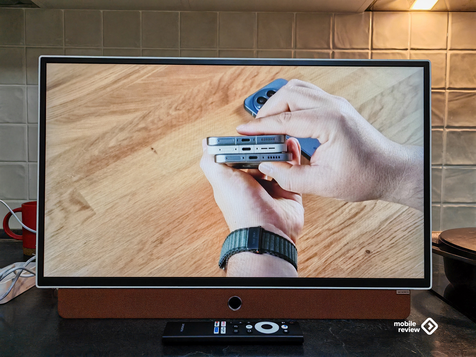 Дисплей в Skyworth Portable TV на 24 дюйма с соотношением сторон 16:9 и разрешением FHD (1920 x 1080 точек). Это VA матрица с яркостью 250 нит, частотой обновления 60 Гц и матовым антибликовым покрытием. В целом, картинка на ТВ вполне приличная по качеству, углы обзора большие, засветов явных нет, а яркости хватает, даже чтобы смотреть телевизор при ярком свете, но понятно, что не под прямыми солнечными лучами. Плюс комфортному просмотру способствует матовый экран, который не бликует. К тому же производитель заявляет, что модель поддерживает технологии низкого уровня синего излучения и антимерцания, причем с сертификацией TÜV Rheinland. А для обработки изображения, устранения шумов и повышения контрастности в ТВ задействуется чип Trochilus PQ Engine.