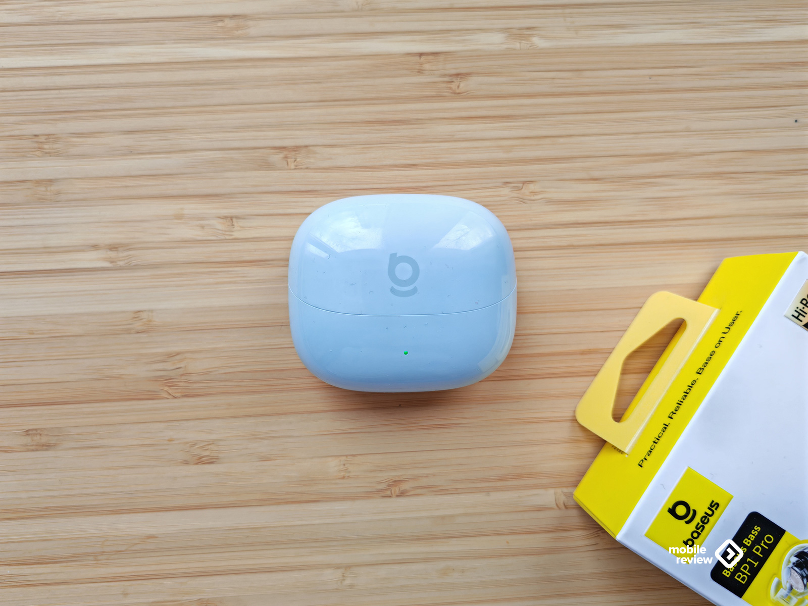 Футляр наушников Baseus Bass BP1 Pro достаточно крупный, округлый и глянцевый (в белом и голубом цвете), держать его в руках приятно, но чуть смущает иногда люфтящая крышка. Последняя здесь открывается/закрывается без благородного щелчка, но в целом довольно неплохо, да и это без проблем можно сделать одной рукой. Внутри наушники надежно примагничены к корпусу, каждый на своем месте, при этом извлекаются и устанавливаются они легко.
