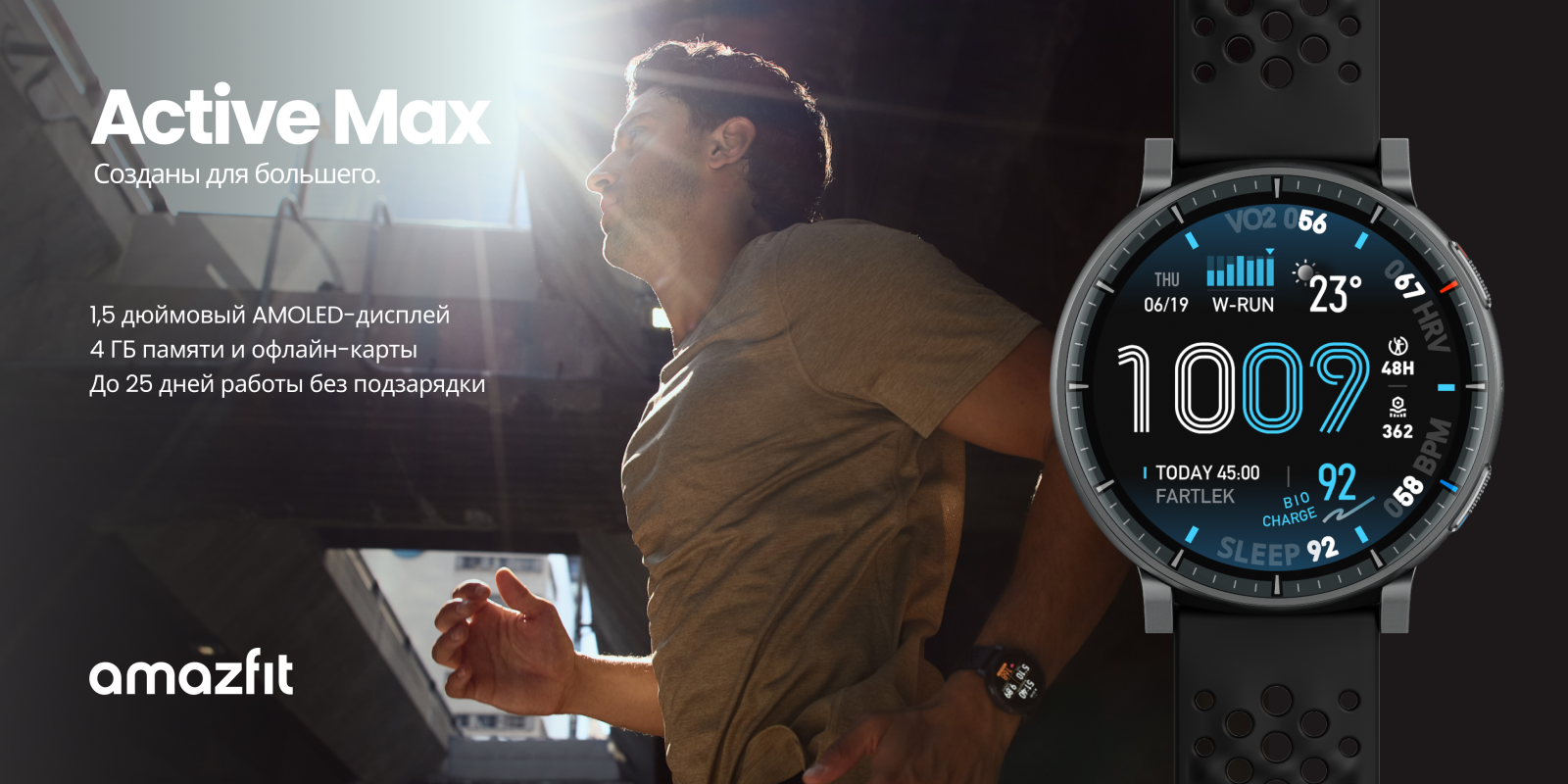 Компания Amazfit, входящая в группу Zepp Health, представила в России новые умные часы Active Max. Модель пополняет линейку устройств для активного образа жизни и делает акцент на увеличенной автономности и расширенном спортивном функционале. Часы оснащены 1,5-дюймовым AMOLED-экраном, который, по данным производителя, способен развивать яркость до 3000 нит для комфортного восприятия информации даже при ярком солнечном свете. Заявленное время автономной работы в обычном режиме использования достигает 25 дней. Ключевой особенностью новинки является технология оценки уровня энергии BioCharge, которая анализирует данные о тренировках, повседневной активности и стрессе пользователя, чтобы помочь сбалансировать нагрузку и восстановление. Для силовых тренировок предусмотрен специальный режим, автоматически распознающий 25 базовых упражнений, подсчитывающий количество подходов, повторений и пауз.
