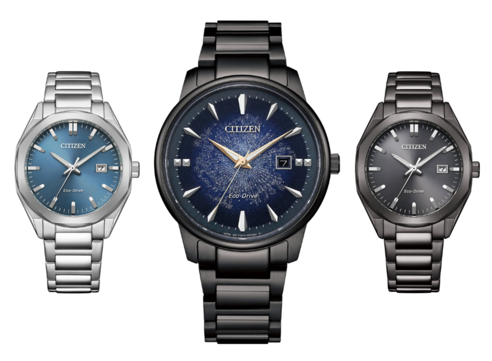 Каждая модель получила индивидуальное цветовое решение. Часы BM7595-89M оснащены темно-синим циферблатом с радиальной текстурой и корпусом с темным напылением. Версия BM7620-83M выполнена в традиционном стальном стиле с ярко-синим циферблатом. Третий вариант, BM7625-80H, предлагает нейтральный угольно-серый циферблат. Браслеты всех моделей имеют конструкцию с комбинированной полировкой, что делает их подходящими как для делового, так и для повседневного гардероба.