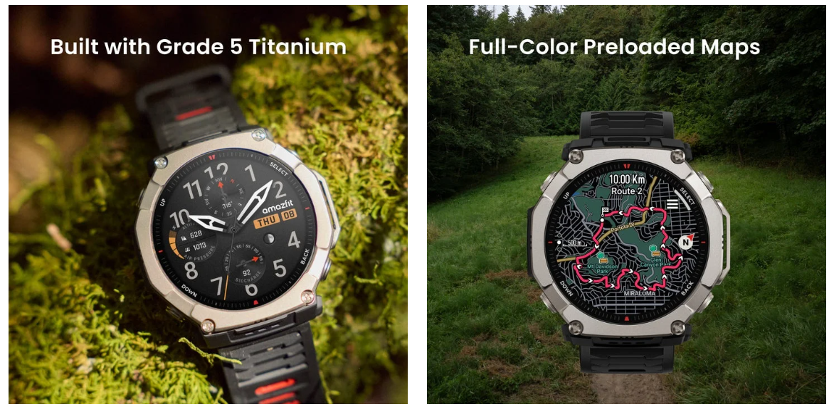 Модель T-Rex Ultra 2 позиционируется как решение для экстремальных условий и активного отдыха. Она получила корпус из титана и AMOLED-экран диагональю 1.5 дюйма с защитой из сапфирового стекла. Часы выдерживают погружение в воду под давлением до 10 АТМ и имеют сертификацию для дайвинга. Особенностью устройства является наличие 64 ГБ встроенной памяти для хранения офлайн-карт и двухрежимного фонарика. Емкость батареи составляет 870 мАч, что позволяет гаджету работать до 30 дней без подзарядки в стандартном режиме. Для навигации используется двухдиапазонная антенна с поддержкой шести спутниковых систем позиционирования.