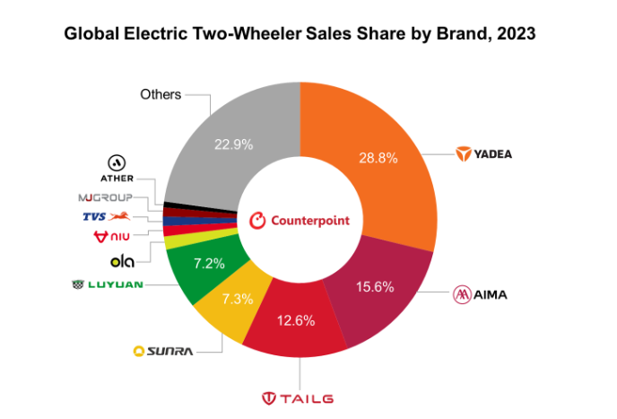 По оценке исследовательской компании Counterpoint, уже четверть двухколесных транспортных средств, проданных в нынешнем году, будут электрическими. Если раньше лидером по объему продаж двухколесного транспорта был Китай, то в нынешнем году на первое место может выйти Индия. Отмечается, что темпы продаж электрических двухколесных транспортных средств растут опережающими темпами, в этом году их будет продано в 1,5 раза больше в сравнении с результатами продаж легковых электромобилей. На пять крупнейших производителей приходится более 70% продаж от общего объема выпуска электрических моделей. Для многих регионов мира именно двухколесный транспорт становится наиболее предпочтительным транспортом для коротких поездок на работу и по ежедневным делам. На текущий момент рынок таких транспортных средств сосредоточен в основном в азиатских странах: Китае, Индии, Вьетнаме, Филиппинах, Индонезии и Малайзии.