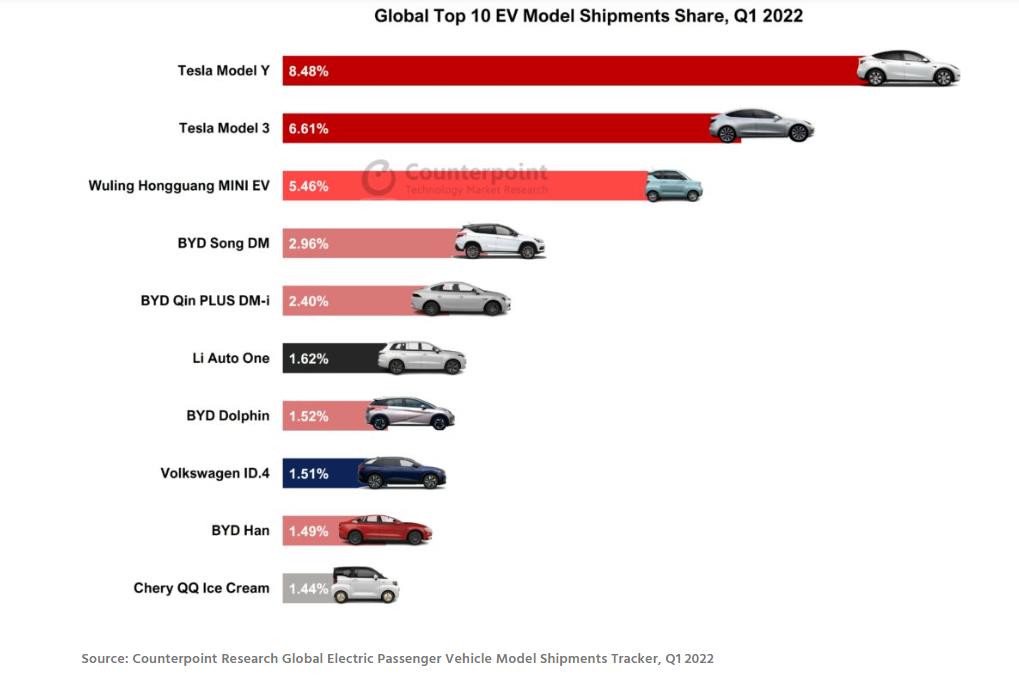 По данным исследовательской компании Counterpoint, глобальные поставки электромобилей в первом квартале текущего года выросли на 79% относительно результатов аналогичного периода прошлого года. Всего на рынок было поставлено 1.95 млн легковых электромобилей. По прогнозам, продажи электрокаров могут превысить по итогам года 10 млн единиц, а к 2030 году их будет продаваться уже 58 млн единиц. Как отмечается, из общего объёма продаж экологичных автомобилей 73% пришлось на полностью электрические машины, а остальная часть — подключаемые гибридные машины. Мировым лидером по продажам электрокаров остаётся Китай, там в первом квартале продажи выросли на 126% и составили 1.14 млн электромобилей. При том, что поставки могли бы быть ещё выше, но этому помешали нарушения в логистических цепочках и нехватка полупроводниковой продукции, а также ограничения из-за ковида в Китае.