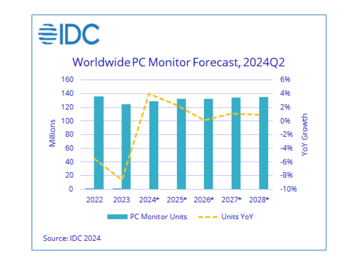 По данным исследовательской компании IDC, глобальный рынок мониторов вырос в прошедшем квартале на 5,9%. Таким образом, этот квартал стал третьим кварталом подряд, в котором наблюдался рост продаж. Это означает, что рынок мониторов восстанавливается после спада, который наблюдался в 2022 и 2023 годах. Отмечается, что в прошедшем квартале 20% от общего объема продаж мониторов пришлось на игровые модели — это самая большая доля игровых мониторов за весь период наблюдения с 2016 года, когда начали фиксировать результаты продаж игровых мониторов. Производители продолжают расширять модельные линейки, предлагая устройства с более высокой частотой обновления экрана. IDC ожидает, что рынок мониторов продолжит восстановление и покажет рост по итогам текущего года и в следующем году. Учитывая, что многие компании сохраняют режим гибридной работы, при котором сотрудники проводят часть времени, работая из дома, продажи потребительских устройств превысили продажи коммерческих моделей мониторов.