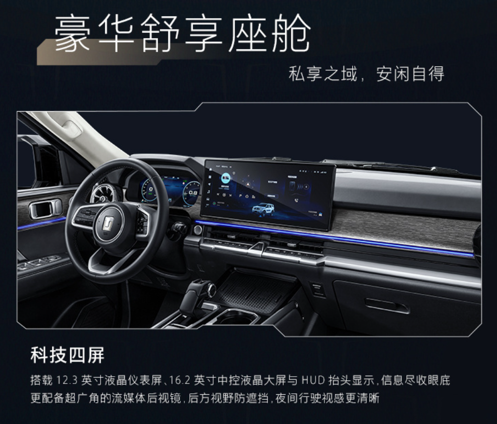 Компания Great Wall выпустила брутальный внедорожник TANK 400 Hi4-T. С одной стороны, автомобиль является городским внедорожником, но при этом его наделили очень мощным и брутальным дизайном с претензией на серьезный внедорожный характер. Машина получила гибридную силовую установку суммарной мощностью 300 кВт, такой двигатель выдает 750 Нм крутящего момента. На чистой электрической тяге машина может проехать 105 километров, она способна преодолевать подъём с уклоном 33 градуса и спуск с уклоном 30 градусов. Дорожный просвет составляет 224 мм. В салоне установлена 12.3-дюймовая цифровая панель приборов и большой 16.2-дюймовый сенсорный экран информационно-развлекательной системы. TANK 400 Hi4-T оборудовали проекционным W-HUD экраном, выводящим данные на лобовое стекло, и большим количеством электронных помощников, облегчающих процесс вождения.