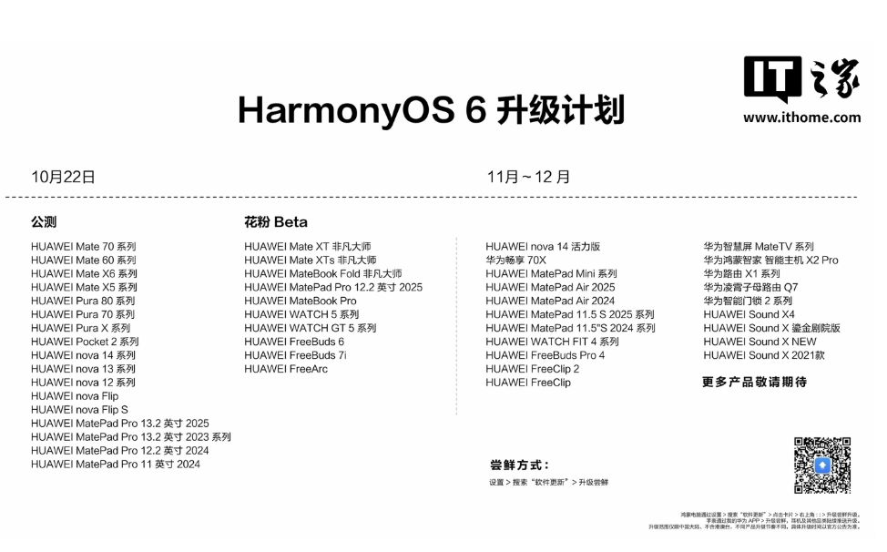 Теперь пользователи получат больше преимуществ от экосистемы Huawei благодаря более глубокой интеграции, при этом устройства производителя и аксессуары умного дома будут работать как единое целое. Что касается графика обновлений, то в первую волну вошли модели серий Mate 70/60/X6/X5, Pura 80/70/X, nova 12/13/14, Pocket 2 и другие; далее последуют планшеты MatePad Pro, часы Watch 5/GT 5, наушники FreeBuds 6/7i/Arc, умные экраны Sound X4, маршрутизаторы и умные замки.