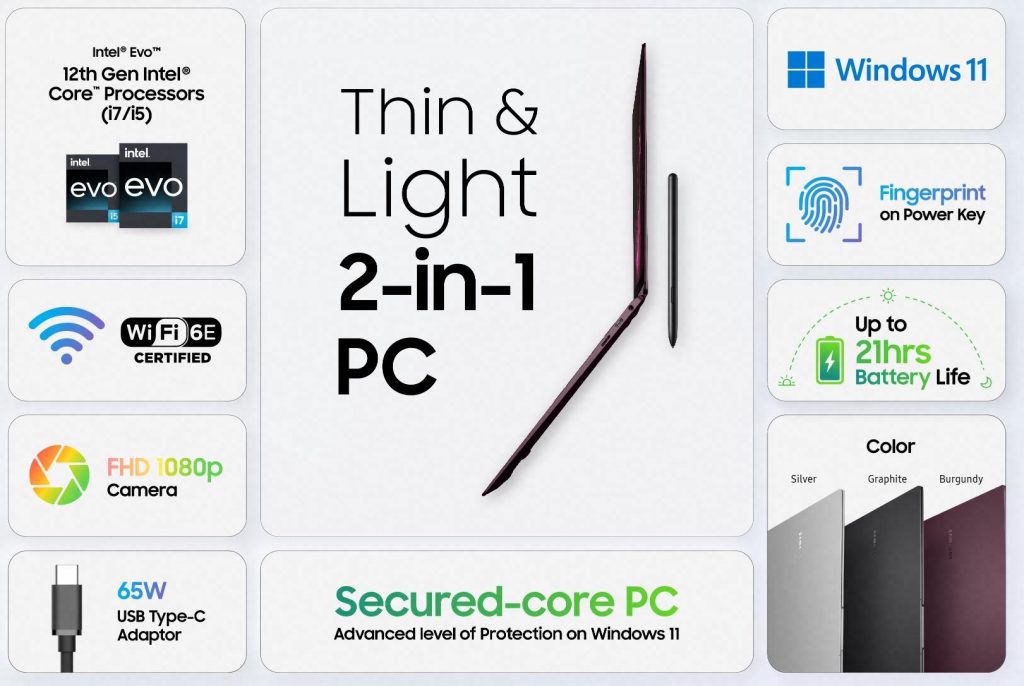 Компания Samsung намерена вернуть ноутбуки на российский рынок. Представленные на выставке MWC 2022 новинки Samsung Galaxy Book2 Pro и Book2 Pro 360 должны поступить в продажу на российском рынке в апреле этого года. Начиная с 18 марта компания Samsung начнёт принимать предзаказы на новинки. На текущий момент нет информации о ценах моделей. Samsung Galaxy Book2 Pro — лёгкий и мощный ноутбук, построенный на процессоре Intel Core i5 и i7 12-го поколения, он будет доступен в двух цветах — графитовом и серебристом. А модель Samsung Galaxy Book2 Pro 360 будет предложена покупателям в трёх цветах — бургунди, графитовом и серебристом. Ноутбуки сертифицированы по Intel Evo, поддерживают быструю зарядку мощностью 65 Вт и могут работать в сетях 5G и Wi-Fi 6E. Производитель заявляет о 21 часе работы от одной зарядки. Старт продаж новинок запланирован на 1 апреля.