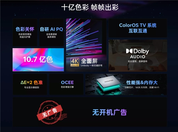 OPPO можно назвать новичком на рынке смарт-телевизоров, ведь первые модели бренда — OPPO TV S1 и R1 — вышли относительно недавно, в октябре 2020 года. Теперь компания старается развить успех в этом сегменте и выпускает в Китае телевизор OPPO K9x. Модель получила 65-дюймовый ЖК экран с разрешением 4K (3840×2160 пикселей) и стандартной частотой обновления 60 Гц. Заявлены поддержка 10-битного цвета, цветовой охват NTSC 70%, яркость 280 нит и цветовое различие ΔE≈2. Начинку телевизора составляют четырехъядерный чипсет от MediaTek, 2 ГБ оперативной памяти и накопитель объемом 16 ГБ. Также имеются поддержка двухдиапазонного Wi-Fi и функций ИИ, стереодинамики мощностью 20 Вт с поддержкой стандарта Dolby Audio и специальный детский режим. В качестве программного обеспечения в смарт-ТВ выступает оболочка ColorOS TV последнего поколения (приятной особенностью ПО станет отсутствие встроенной рекламы).