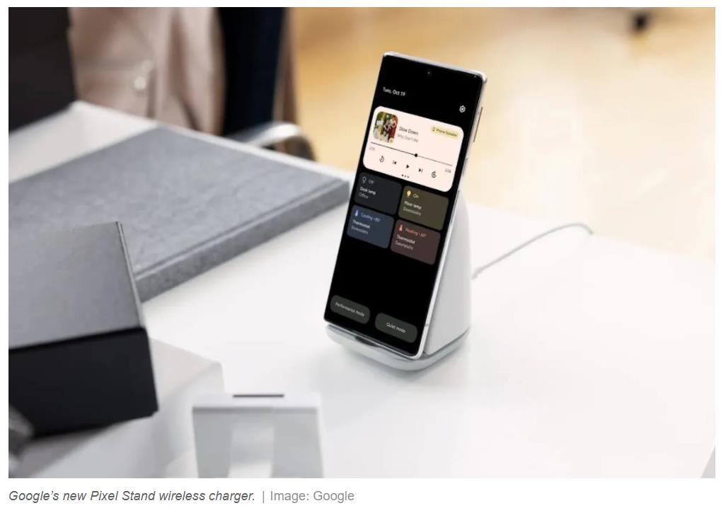 В ходе презентации новых смартфонов Google Pixel 6 и Pixel 6 Pro было также продемонстрировано новое беспроводное зарядное устройство Google Pixel Stand. Это устройство второго поколения и, по заявлению компании, оно способно обеспечить смартфонам Pixel зарядку мощностью 23 Вт, остальные устройства, поддерживающие стандарт беспроводной зарядки Qi, смогут заряжаться на мощности до 15 Вт. Компания Google позаботилась, чтобы заряжаемые смартфоны не перегревались во время зарядки, и обеспечила подставку практически бесшумными вентиляторами. Зарядка смартфона производится, когда он находится в портретном режиме, что упрощает получение уведомлений. Зарядное устройство Google Pixel Stand будет стоить 79$, о сроках его появления в продаже будет сообщено позднее.