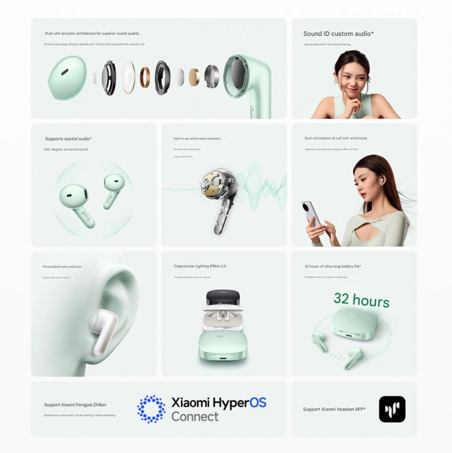 Представлены бюджетные беспроводные наушники Redmi Buds 7S — вкладыши без силиконовых насадок и с двойными драйверами, сообщает портал GSMArena. Производитель заявляет до 32 часов автономной работы. 7S оснащены 12,4-миллиметровыми титановыми основными драйверами и 5,5-миллиметровыми микропьезоэлектрическими твитерами с керамическим покрытием. Наушники подключаются по Bluetooth 5.4 и поддерживают объемный звук на 360 градусов. Есть также адаптивное шумоподавление (ANC) с двумя микрофонами, размещенными в каждом наушнике.