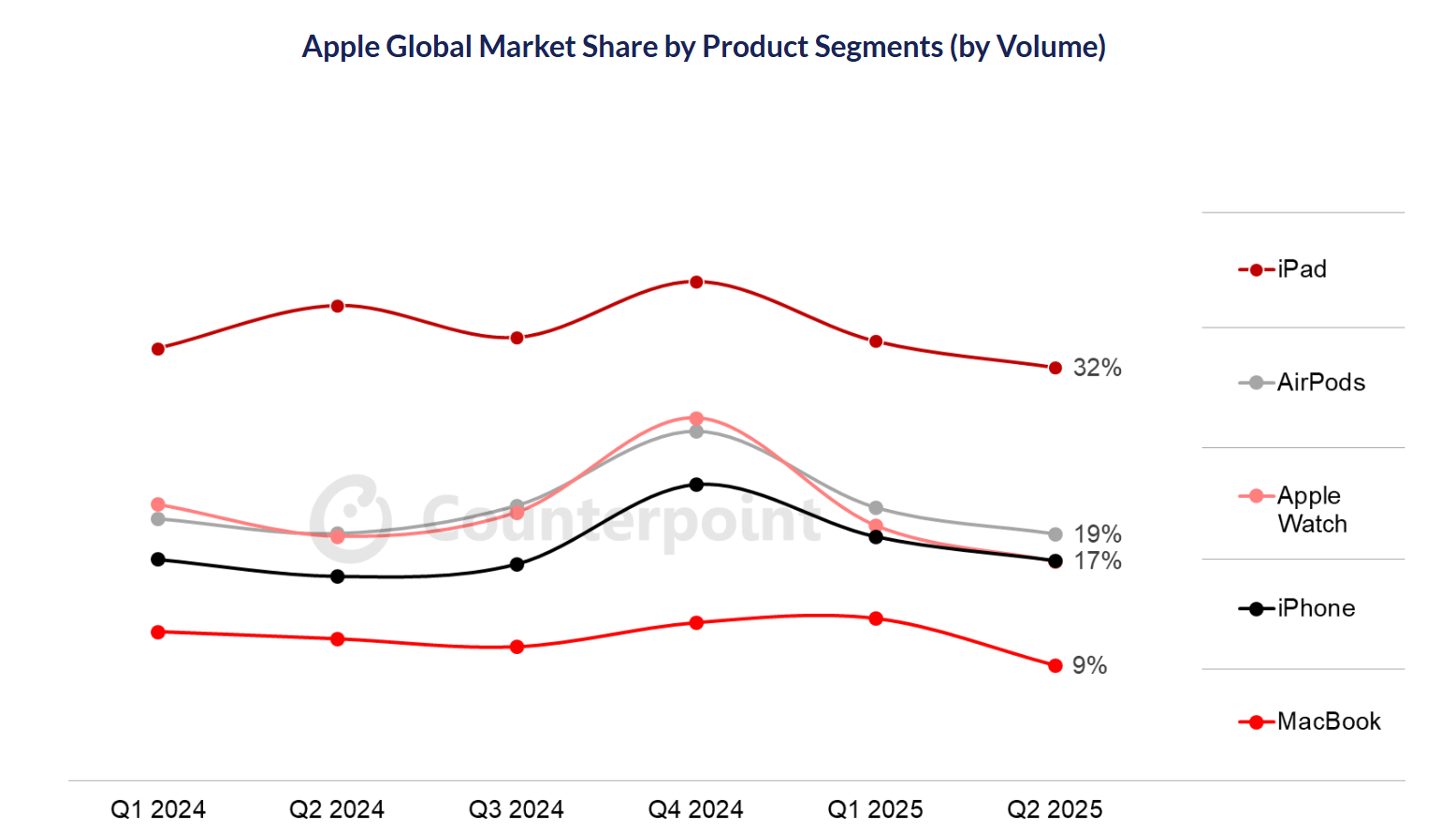 iPhone оставался в центре внимания, особенно благодаря агрессивной распродаже складских запасов, в частности моделей Pro в Китае. В США отгрузки в начале квартала были высокими из-за неопределенности с тарифами. Наиболее быстрорастущим рынком стала Япония, где популярность iPhone 16e оказала сильную поддержку продажам. Этот же аппарат хорошо показал себя и в США. Сильный рост продолжился на развивающихся рынках, таких как Индия, Ближний Восток и Африка.