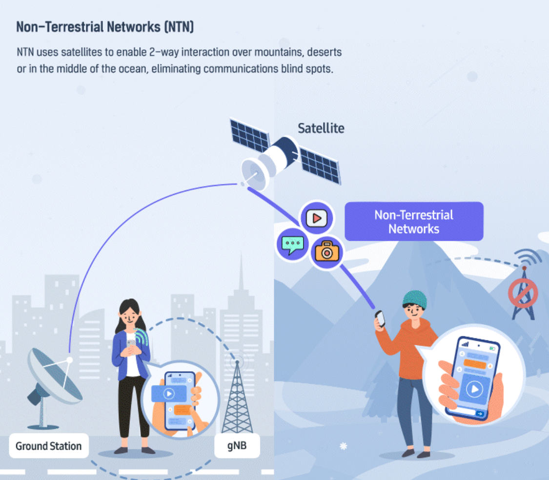 Технология NTN — это коммуникационная технология, использующая спутники и другие объекты для подключения связи 5G в регионах, где недоступны наземные сети связи, например, такая связь будет работать в горах, пустынях и океанах. Технология позволит обеспечить работоспособность различных сервисов и служб в местах стихийных бедствий и может использоваться для работы сервисов воздушной аэромобильности в будущем, повышая возможности беспилотных летательных аппаратов.