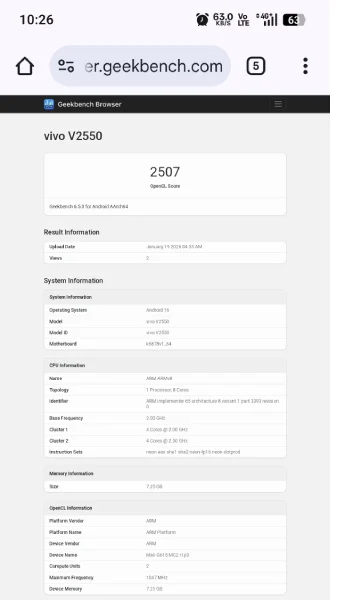 В преддверии глобального анонса серии Vivo V70 в сеть попали результаты тестирования модели Vivo V70 FE в бенчмарке Geekbench, сообщает портал Gizmochina. Данные подтверждают ключевые аппаратные характеристики одного из ожидаемых смартфонов линейки. Согласно записям в базе Geekbench, устройство с номером модели V2550 использует процессор MediaTek Dimensity 7300. Чипсет работает в паре с 8 ГБ оперативной памяти, а операционной системой выступает Android 16. В тесте OpenCL, который измеряет производительность графики, аппарат набрал 2507 баллов. Ранее Vivo V70 FE уже прошёл сертификацию в Индонезии, а также получил сертификат TUV, указывающий на поддержку быстрой зарядки мощностью 90 Вт. Это говорит о том, что при средней производительности платформы акцент в модели может быть сделан на скорости восполнения заряда аккумулятора.