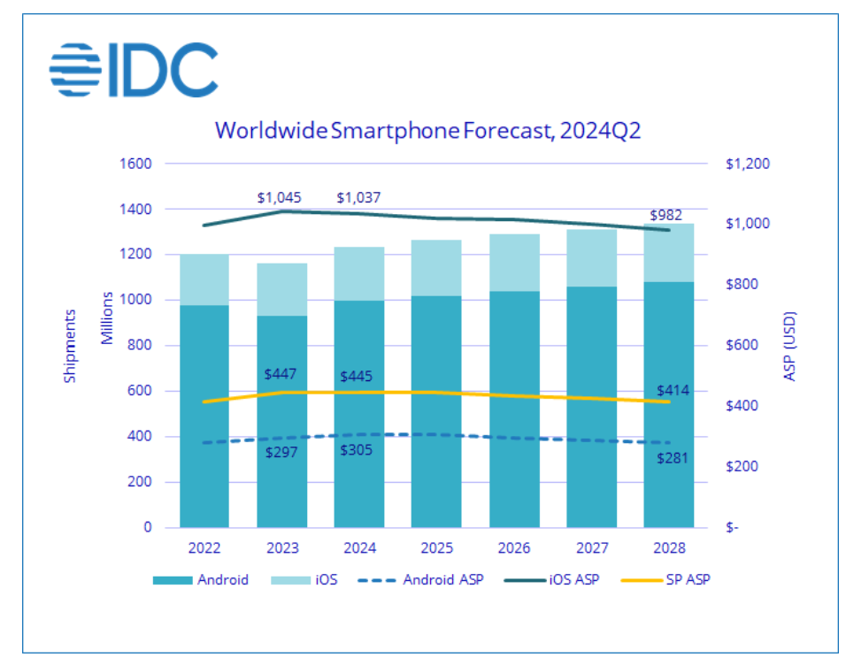 По прогнозу исследовательской компании IDC, в этом году глобальный рынок смартфонов вырастет на 6%, всего по итогам года в мире будет продано 1,23 млрд смартфонов. После роста на 12% в первом квартале и последующего роста на 9% во втором квартале рынок демонстрирует восстановление, в том числе и за счет активного восстановления рынка Android-смартфонов в Китае. Такая ситуация наблюдается после двух трудных для рынка смартфонов лет. Отмечается, что рынок Android-смартфонов в этом году значительно опережает рост смартфонов на платформе iOS. Если модели на Android вырастут по итогам года на 7,1%, то рост моделей на iOS составит только 0,8%. Такой слабый рост продаж устройств на iOS обусловлен усиливающейся конкуренцией с iPhone со стороны китайских смартфонов на Android на рынке континентального Китая. Отдельно подчеркивается рост спроса на смартфоны с поддержкой функций искусственного интеллекта, что обеспечивает дополнительные продажи в высоком ценовом сегменте.