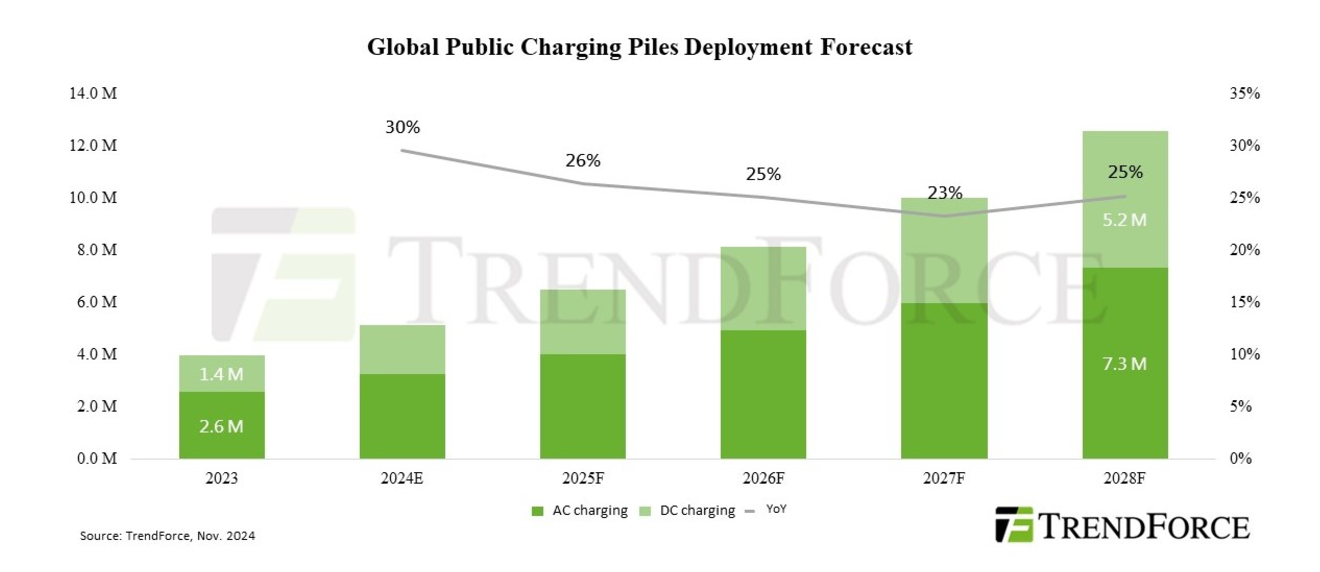 По оценке исследовательской компании TrendForce, темпы прироста зарядных станций для электромобилей сократились в нынешнем году до 30% по сравнению с темпом роста в прошлом году на уровне 60%. Лидером по количеству зарядных станций в мире является Китай. Ожидается, что общее количество зарядных станций в Китае к концу года будет составлять 3.6 млн единиц, это 70% от общего количества зарядных станций в мире. В 2024 году самый большой прирост количества зарядных станций будет демонстрировать Южная Корея, там он составит 39%. В Южной Корее власти страны поставили цель достичь установки 500 тысяч зарядных станций в 2025 году. Наиболее активно внедряется создание зарядных станций постоянного тока, как наиболее эффективных с точки зрения зарядки электромобилей. На конец нынешнего года таких станций будет 37% от общего количества. Отсутствие массового увеличения количества зарядных станций в регионах со слабой инфраструктурой по-прежнему является одним из главных факторов, сдерживающих повсеместное внедрение электрического транспорта.