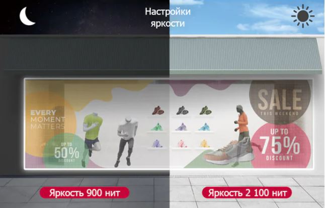 Прозрачная светодиодная пленка обеспечивает широкий диапазон цветов, в то же время сохраняя высокую прозрачность и яркость до 1000 кд/м² для модели LAT240DT1 и до 2100 кд/м² для модели LAT140.