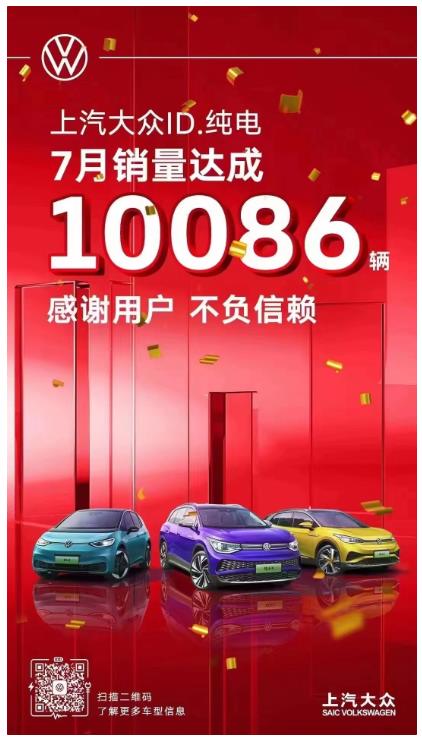 Компания Volkswagen сообщила, что продажи электромобилей компании в Китае превысили в июле 10 000 единиц. Volkswagen продаёт в Китае три модели своих электромобилей — ID.3, ID.4 и ID.6. При этом отмечается, что компании Volkswagen удалось добиться такого результата после недавней корректировки в большую сторону цен на эти машины, что было связано с ростом стоимости компонентов и аккумуляторных батарей. После повышения модель ID.3 стоит от 150 000 юаней до 185 000 юаней. Модель ID.4 предлагается в пяти модификациях по ценам от 189 000 юаней до 286 000 юаней. Старшая из линейки модель ID.6 продаётся по ценам от 253 000 юаней до 338 000 юаней. Таким образом, Volkswagen присоединилась к числу производителей электрокаров, чьи месячные продажи превышают 10 000 машин.
