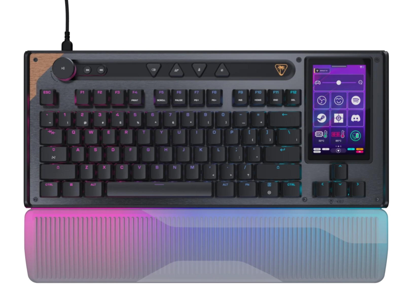 Компания Turtle Beach расширила ассортимент игровых аксессуаров, представив линейку Command. В нее вошли две модели клавиатур и три манипулятора, главной особенностью которых стала интеграция сенсорных дисплеев. Клавиатура KB7 TKL выполнена в компактном корпусе без цифрового блока и оснащена переключателями на эффекте Холла. Эти датчики позволяют регулировать глубину срабатывания клавиш. Модель снабжена дисплеем диагональю 4.3 дюйма, на который можно выводить управление стриминговыми сервисами OBS и Streamlabs, настраивать макросы или следить за состоянием системы. Для тех, кому важна модульность, компания предусмотрела отдельный цифровой блок KP7, его можно прикрепить к старшей версии KB7 TKL.