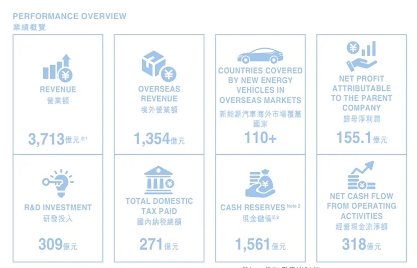 Крупнейший в мире производитель автомобилей на новой энергии, китайская компания BYD, показала финансовые результаты за первое полугодие текущего года. Выручка компании составила 371.3 млрд юаней, что соответствует росту на 23.3% относительно результатов продаж этого периода годом ранее. Компания увеличила свою чистую прибыль на 13.7% до уровня 15.5 млрд юаней. Интересные данные касаются расходов BYD на научно-исследовательские и опытно-конструкторские работы (НИОКР): они за отчётный период выросли на 53% и составили 30.9 млрд юаней. Компания BYD является одним из крупнейших работодателей в автомобилестроении Китая, в компании работает около 885 тысяч сотрудников. Компания BYD не только выпускает автомобили, но также занимается производством аккумуляторных батарей для своих автомобилей и других игроков рынка, а также занимается выпуском электроники, в частности компания BYD выпускает электронику, такую как смартфоны и планшеты, например для компании Xiaomi. В настоящий момент компания BYD активно работает над расширением своей глобальной экспансии,  автомобили компании уже представлены в более чем 110 странах мира.