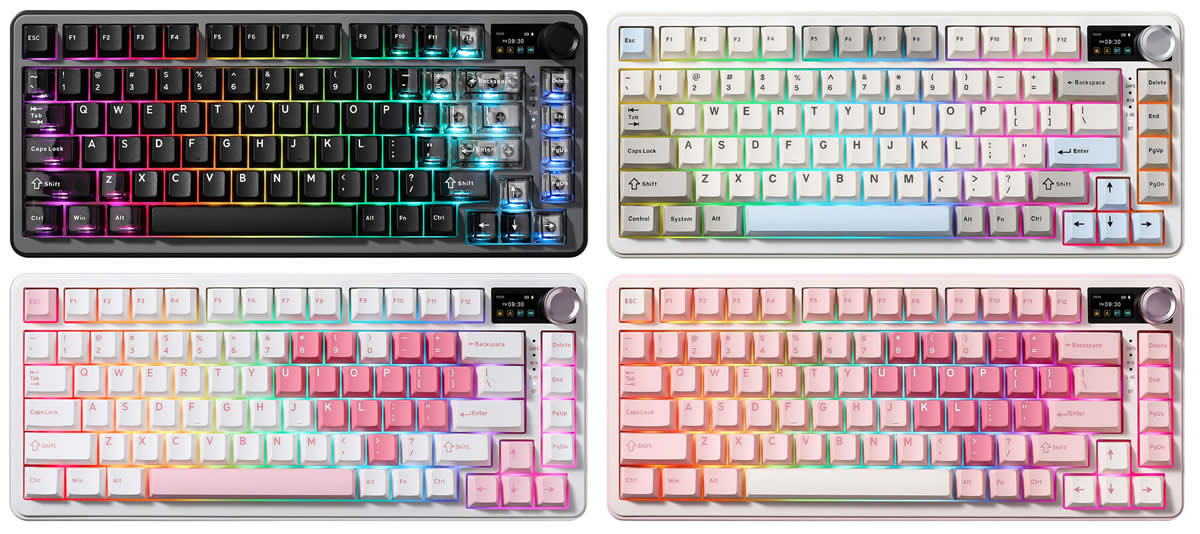 Компания Yunzii представила беспроводную механическую клавиатуру B75 PRO Max, которая является продолжением линейки B75 Pro, но предлагает максимальную производительность и эстетику. Устройство выполнено в компактной 75-% раскладке и оснащено многофункциональным поворотным энкодером и улучшенным TFT-дисплеем, на котором отображаются уровень заряда, дата и время, операционная система, анимированные GIF-файлы и пользовательские изображения. Клавиатура поддерживает три режима подключения — проводной, 2.4 ГГц и Bluetooth, и может одновременно хранить конфигурации до пяти устройств. Ёмкий аккумулятор на 8000 мАч обеспечивает длительную работу. Модель полностью совместима с прошивками QMK и VIA, поэтому можно переназначать клавиши, создавать макросы, настраивать RGB-подсветку и функции энкодера, настроенного по умолчанию на регулировку громкости.