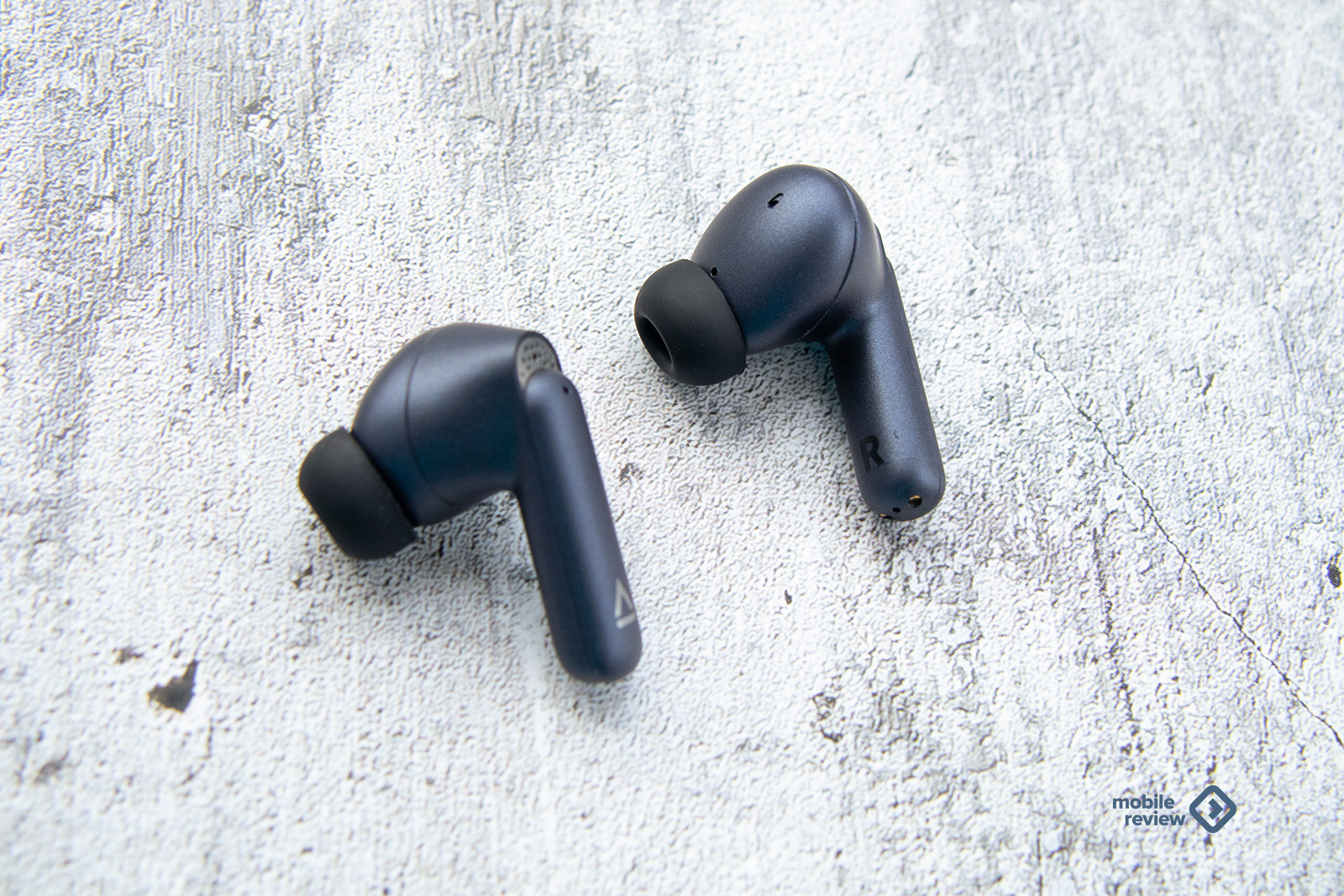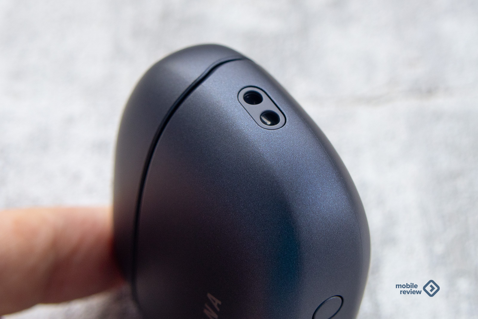 Сами наушники также продолжают дизайнерские идеи серии Ace: ножка в месте присоединения к центральному элементу сделана чуть короче, и «разница» закрыта металлической сеточкой, под которой скрывается микрофон. Отверстие на самой ножке с внешней её стороны — для яркого светодиода, показывающего подключение и заряд. Основной микрофон расположен на торце ножки, его окружают две круглых контактных пластинки, звуковод овальный и также прикрыт крупной металлической сеткой. В общем, выглядят наушники самобытно, что плюс.