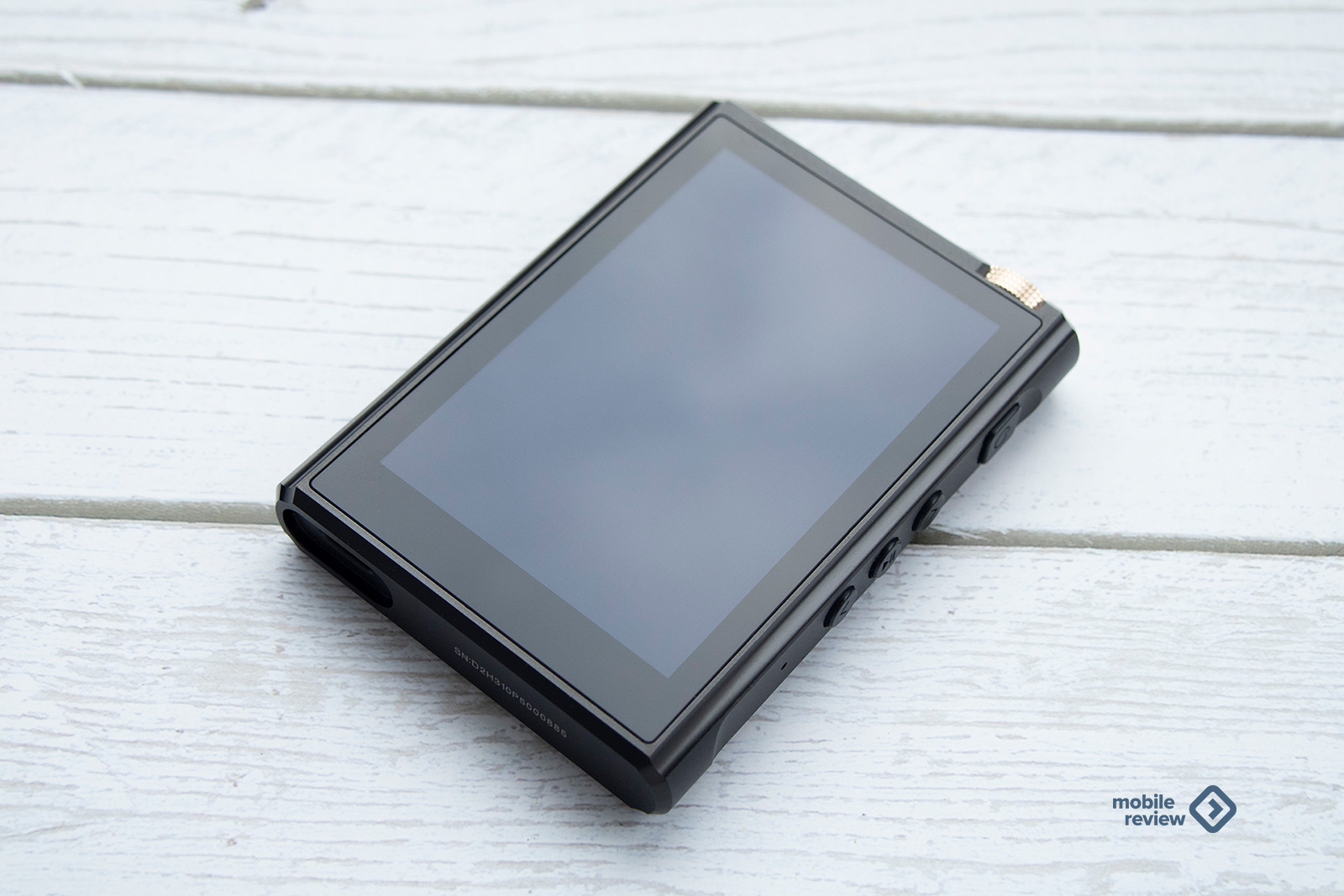 Плеер прямоугольный, чёрный, металлический, с крутилкой наверху — он выглядит так, как в понимании обывателя и должен выглядеть Настоящий Hi-Fi Плеер. Уверен, многие оценят. Всю переднюю панель ожидаемо занимает экран, точнее, защитное стекло с широкими рамками, а посередине уже располагается IPS-матрица с разрешением 320×480 и очень пристойного для плеера качества. Да, это не органика, но цвета всё равно сочные, приятные, и с функцией показа красивых обложек альбомов да менюшек экран справляется отлично. К чувствительности сенсора тоже претензий нет.