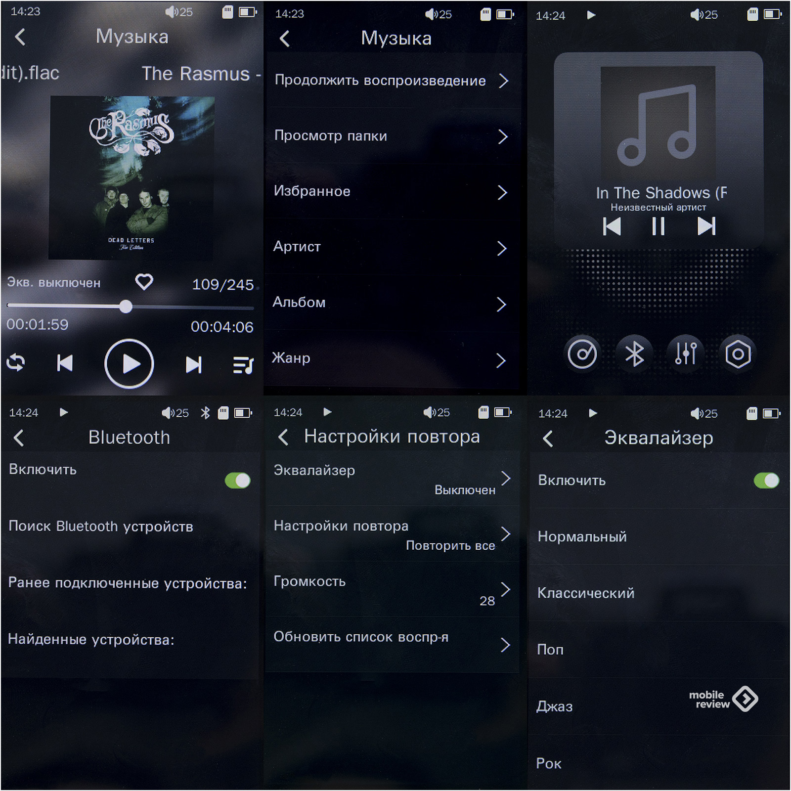 Прошивка плеера уникальная, создана на основе Linux. Да, тут не популярный Android, и вы не можете ставить приложения, залезать в интернет или использовать стриминговые сервисы — только прослушивание треков с карты памяти, только хардкор! Хорошо это или плохо, каждый решает самостоятельно, но возможности плеера надо осознавать до момента покупки, чтобы потом не было удивлений и разочарований. С другой же стороны, отсутствие сложной прошивки позволяет выделить максимум ресурсов для звука. А так функции стандартны: сортировка треков по папкам, альбомам, исполнителям и тому подобному, настройка эквалайзера на 13 полос с готовыми пресетами, режимы повтора и активация Bluetooth для соединения с наушниками или колонкой. Всё написано по-русски, названия понятны.