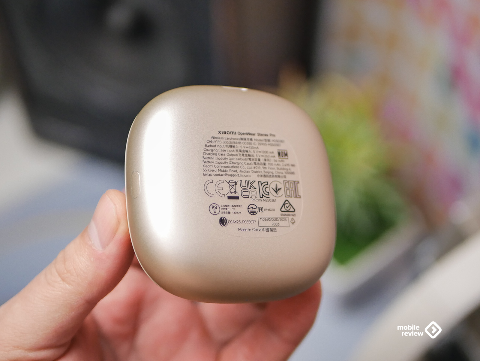 А вот внешний вид получился просто шикарным. Никаких лишних претензий, только приятные впечатления. В золотой версии верхняя крышка сделана под кожу — мягкая, тактильно приятная, будто аксессуар из премиальной линейки. Нижняя часть — матовый прочный пластик в золотистом оттенке. Вся композиция смотрится довольно элегантно и даже довольно дорого. Логотип Xiaomi на крышке слегка играет на свету, а сзади есть техническая наклейка — ее можно спокойно снять, если она раздражает взгляд.