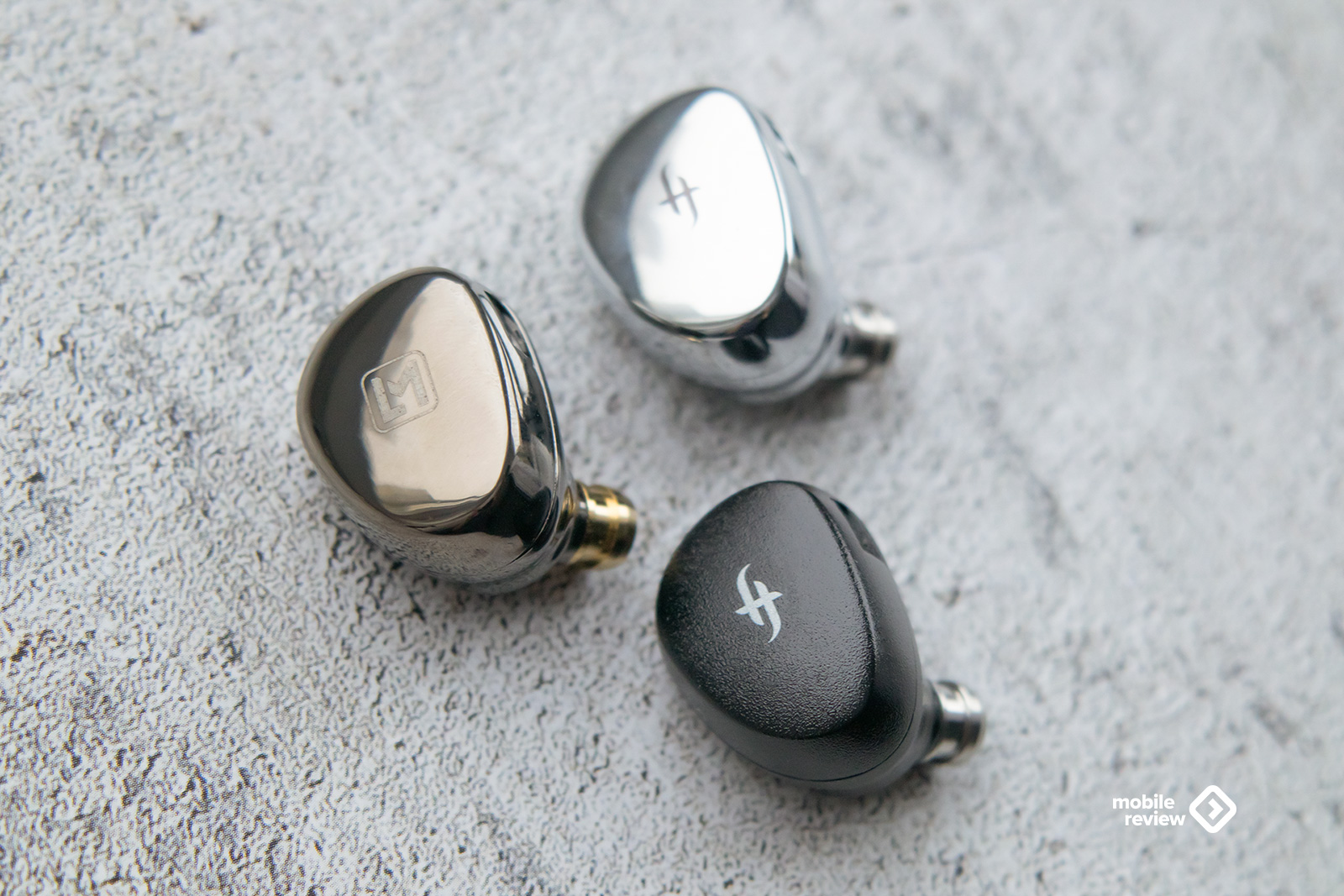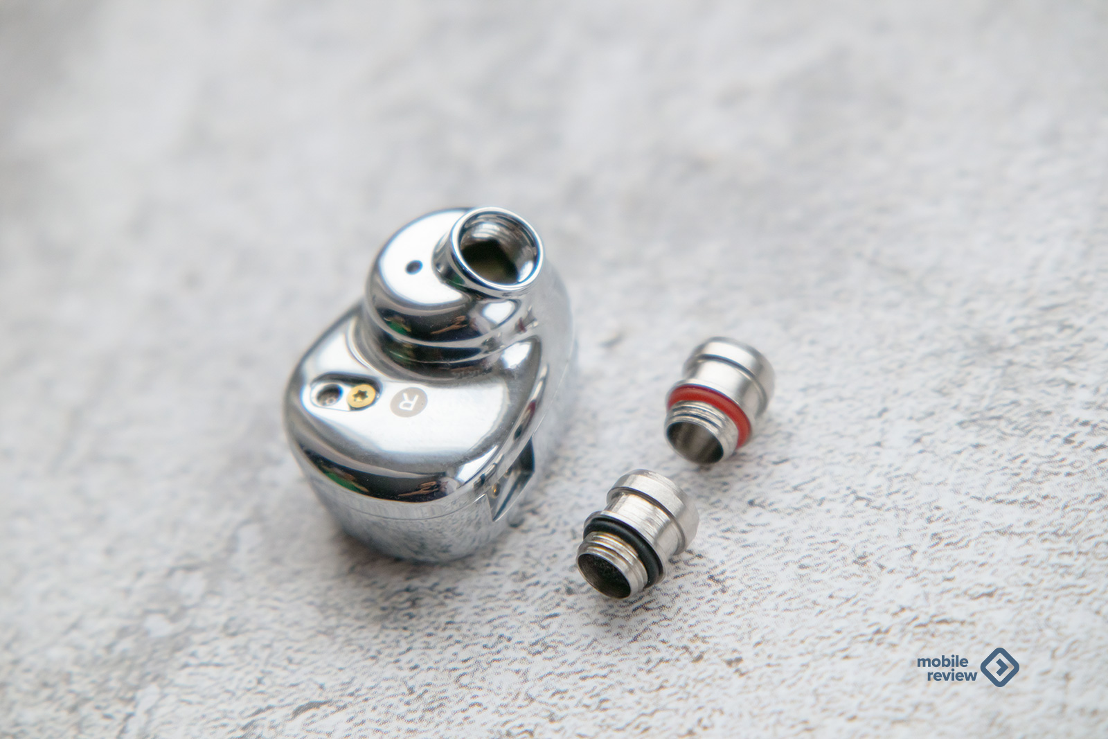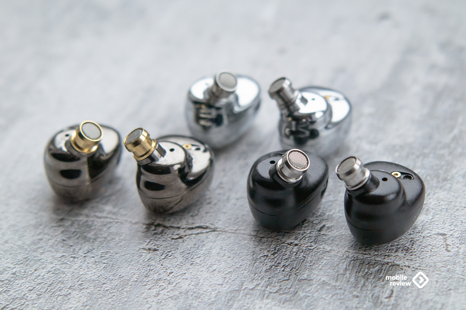 Наушники хоть и выглядят по-разному, все отлиты из металла и обработаны на ЧПУ-станке. У обычных EA500 светлый корпус отполирован до зеркального блеска, EA500 LM выглядят более матовыми и темными, а «цифровые» EA500 DSP имеют чёрное матовое песочное покрытие. На внешних сторонах корпусов нанесены логотипы, внутренние же части двухуровневые, с компенсационными акустическими отверстиями, рядом с которыми есть маркировка правого и левого каналов. Подключаются наушники к кабелю стандартным разъёмом типа «микровилка» 0.78 мм, так что остаётся возможность замены на любимый кастомный кабель и, таким образом, апгрейда-изменения звука (да, кабели действительно влияют на звук!). Звуководы наклонены в сторону ушного канала и просто вкручиваются в корпус руками: никаких особых усилий, никаких сложностей, всё мягко, точно, соединение дополнительно фиксируется маленьким резиновым колечком у основания резьбы. Я ходил с наушниками, доставал-убирал в чехол, менял амбушюры — ноль проблем, резьба не раскрутилась ни на йоту.