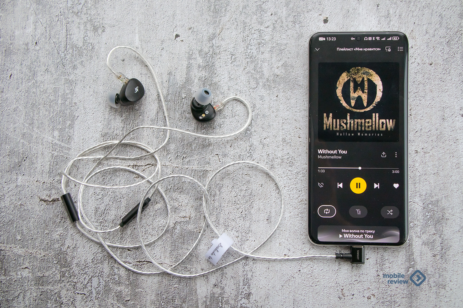 По посадке всё тоже ожидаемо: корпус комфортно размещается в ушной раковине, а заушная часть кабеля не даёт всей конструкции выпасть наружу, так что надёжность хорошая. Поэтому что за сборку, что за материалы с посадкой — однозначная пятёрка.