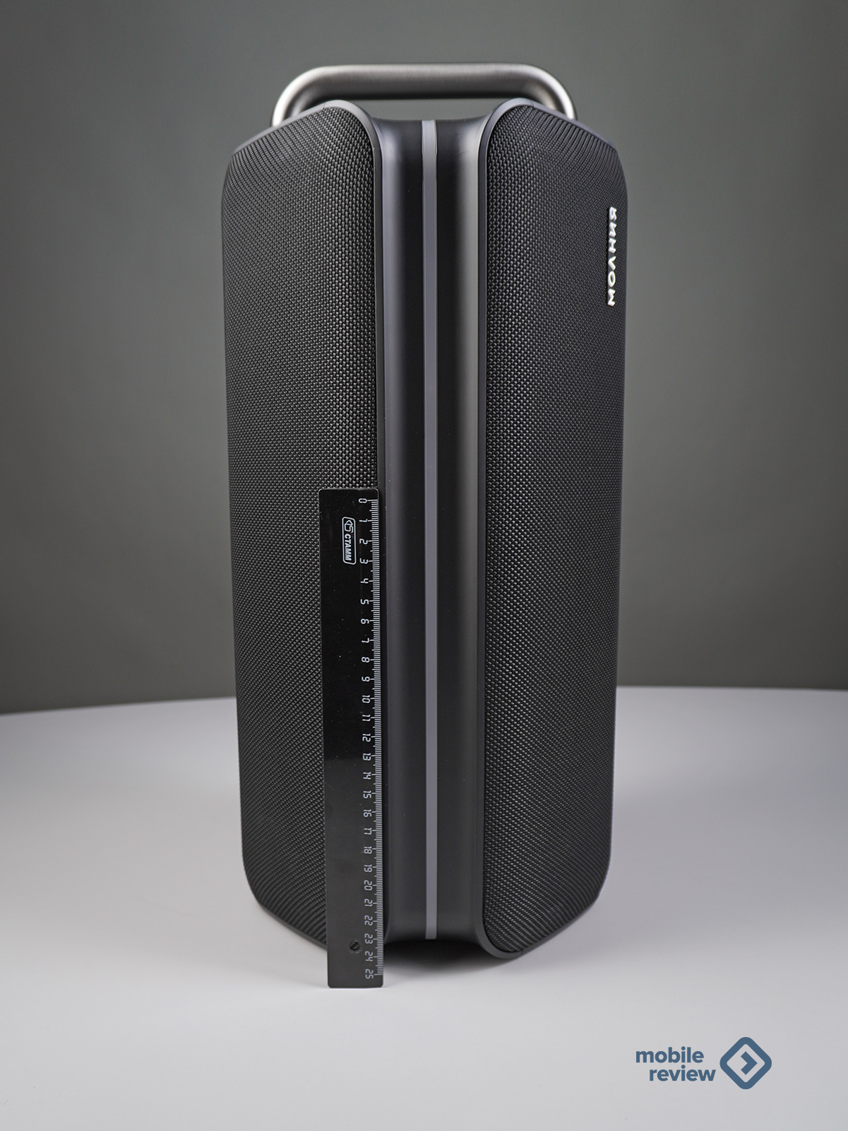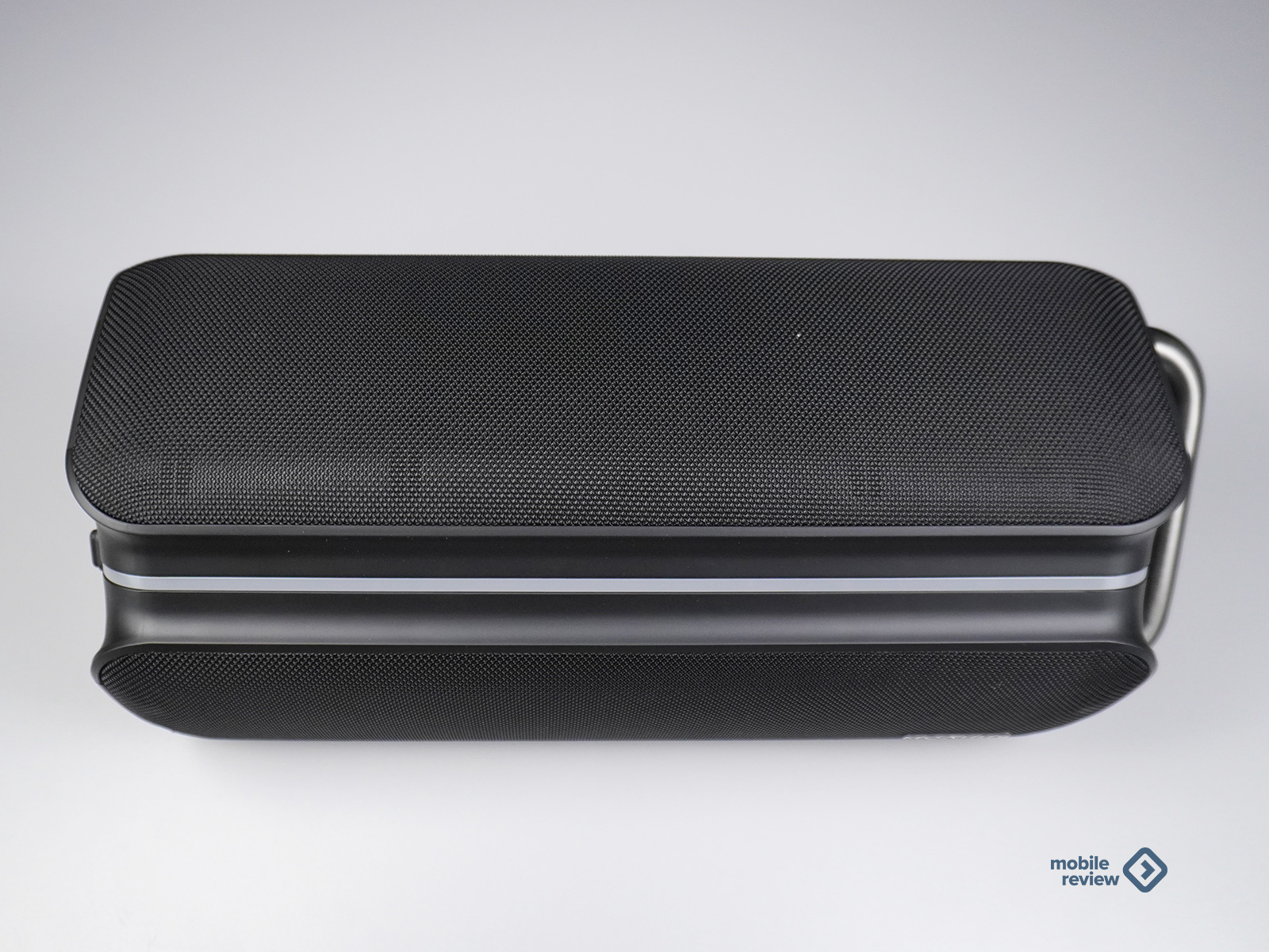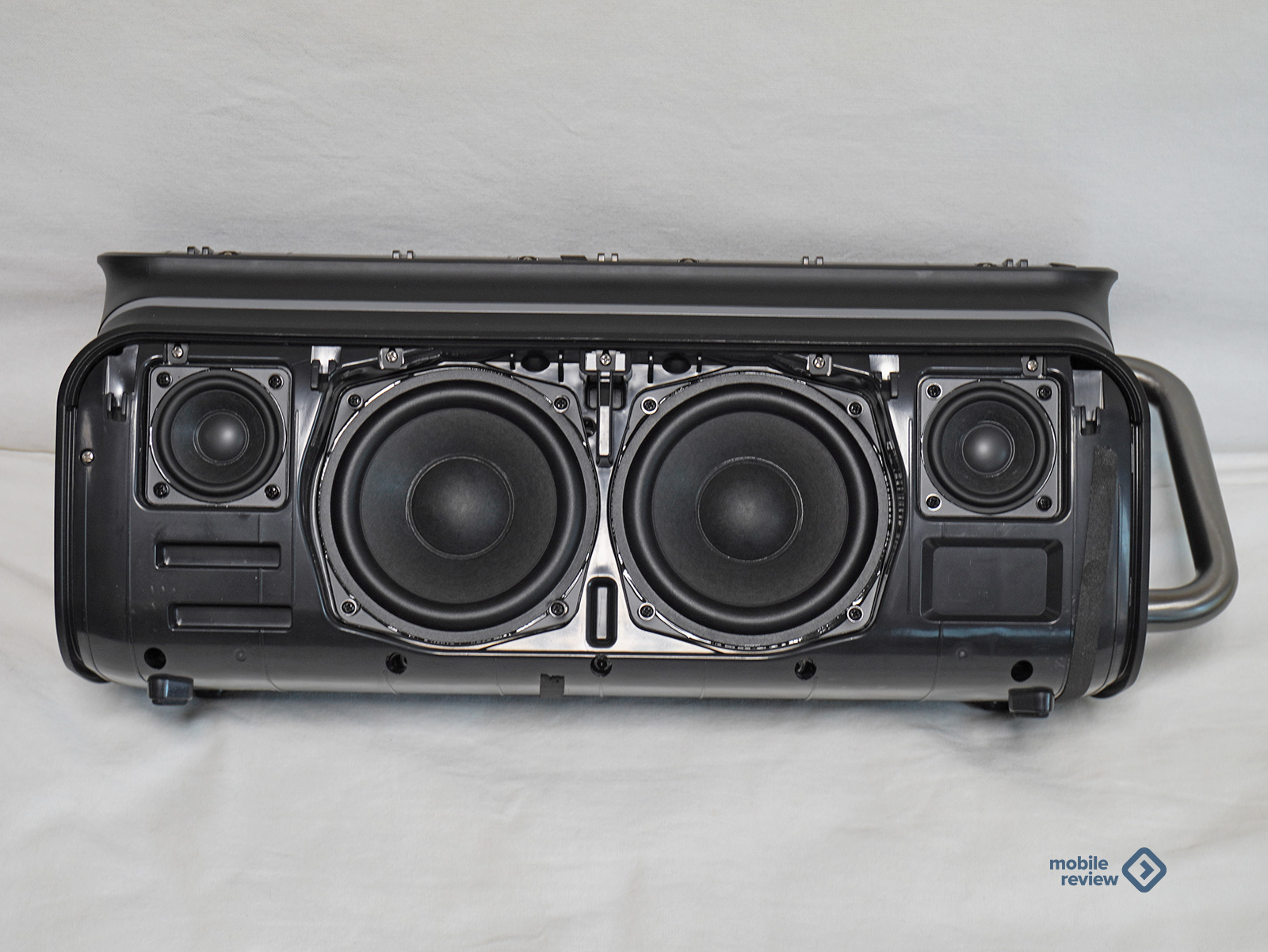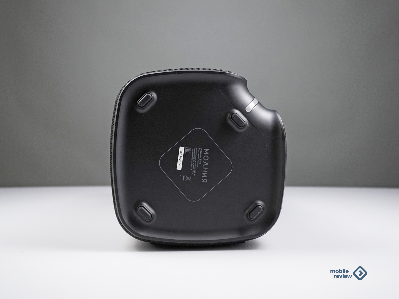Единственное, что хотелось бы отметить, так это нюанс с подключениями в положении стоя. Доступ к портам выходит отличный, но как только речь заходит о том, чтобы заряжать устройтсво от USB, всплывает нюанс. Не всякий кабель без проблем дотянется от розетки до порта, либо вам придется ставить колонку почти вплотную к стене. А эта идея не очень хороша. Дело в том, что, несмотря на то, что нигде в описании и характеристиках не сказано о наличии пассивных излучателей, они имеются – на стороне, обратной той, где расположены активные динамики (на которой логотип). Соответственно, оказавшись слишком сильно прижатыми к вертикальной поверхности, они начнут работать некорректно, а если вы еще и включите функцию усиления низких частот и выкрутите громкость, музыкальная картина будет безнадежно испорчена. В общем, я бы советовал использовать не штатный кабель, а длиной хотя бы метра полтора. Благо обычный USB-C сейчас найти не проблема.