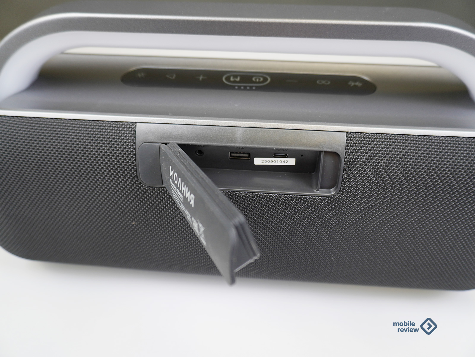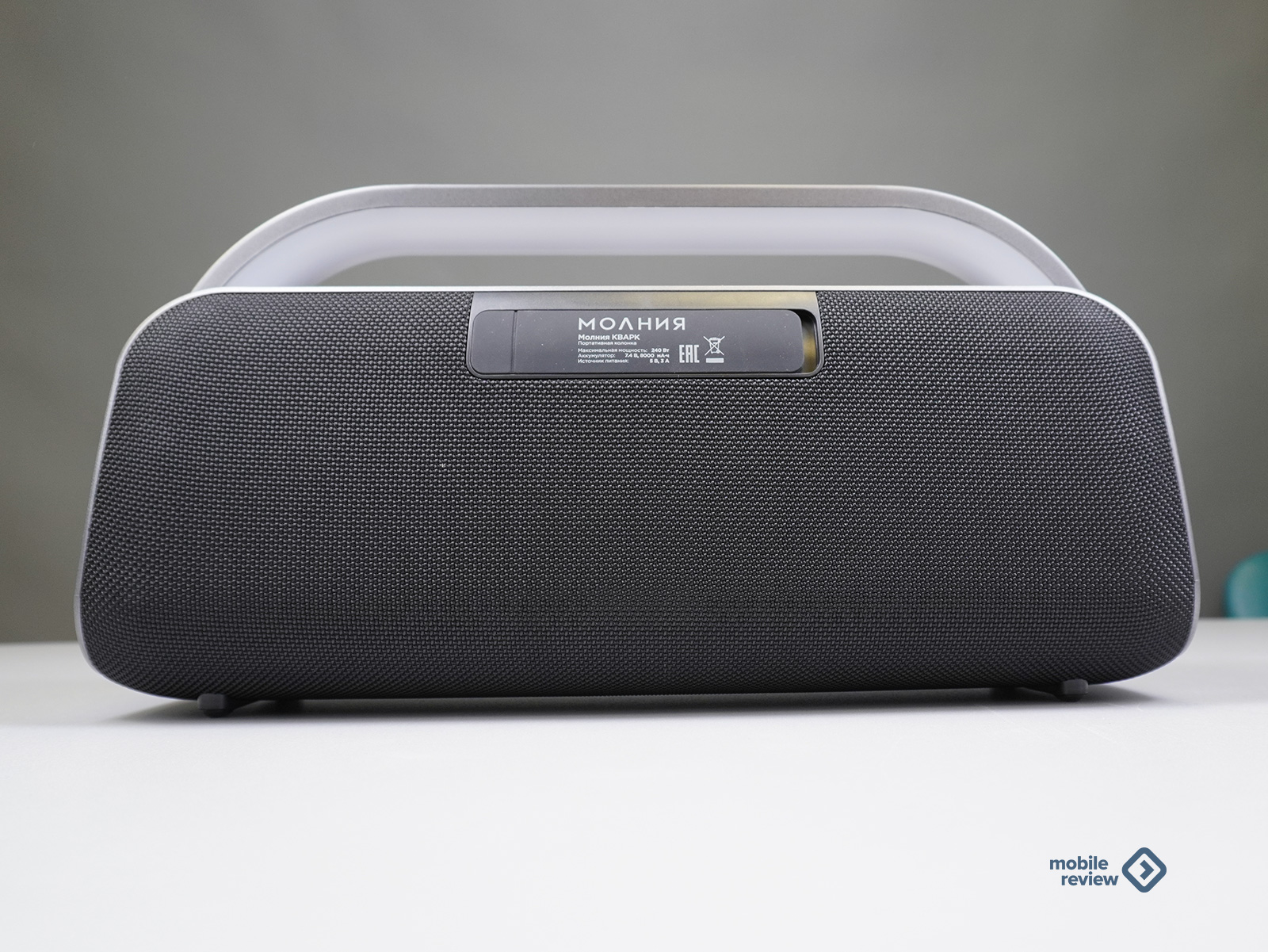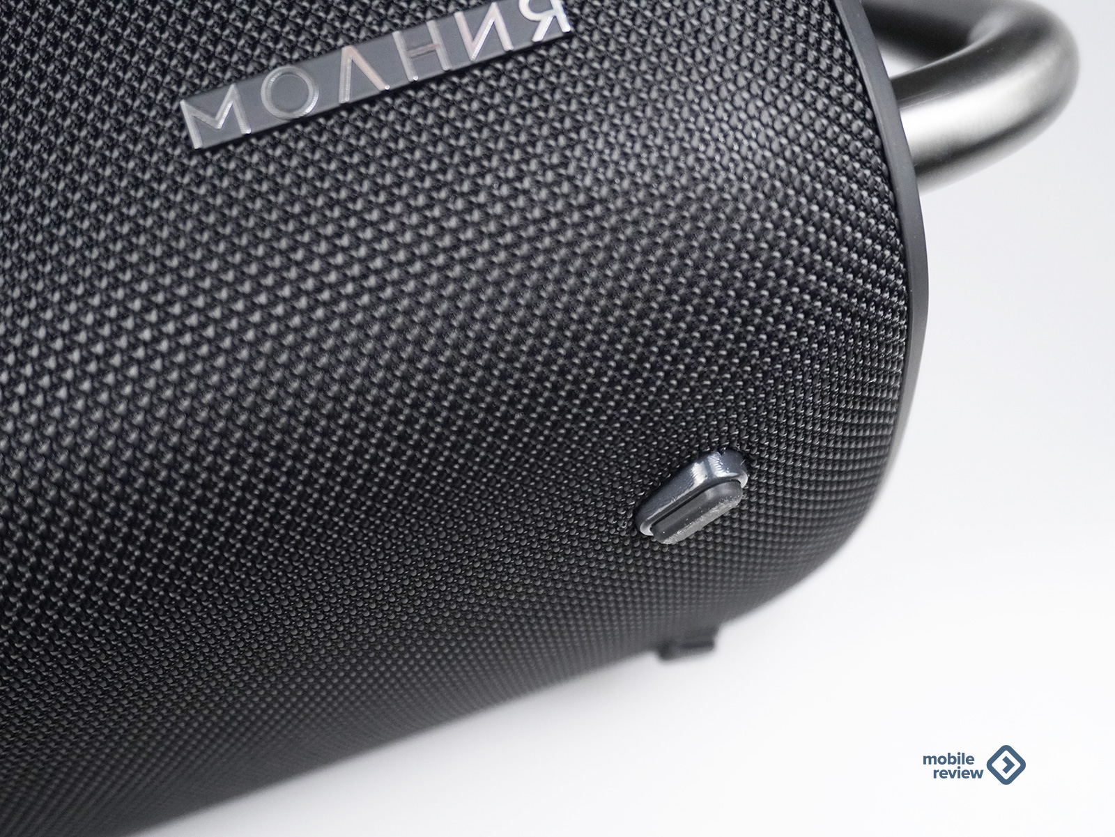 Интересно, что у «Молнии Бит» ручку решили сделать металлической. Она приятно холодит руку, но для повышения влагостойкости и уменьшения вибраций пришлось интегрировать ее в корпус колонки через резиновый уплотнитель. Насчет влаги не знаю, но с вибрациями справиться удалось.