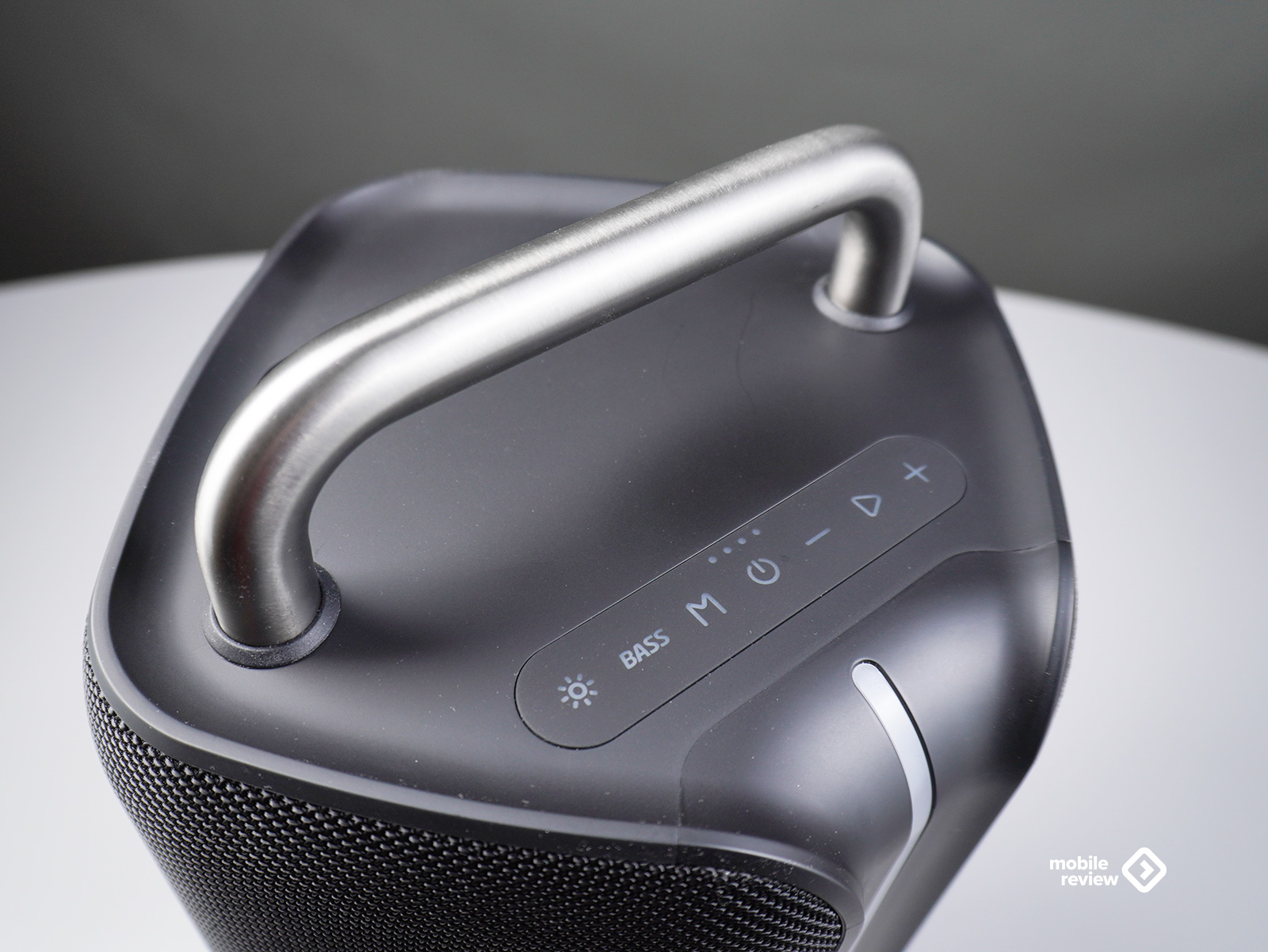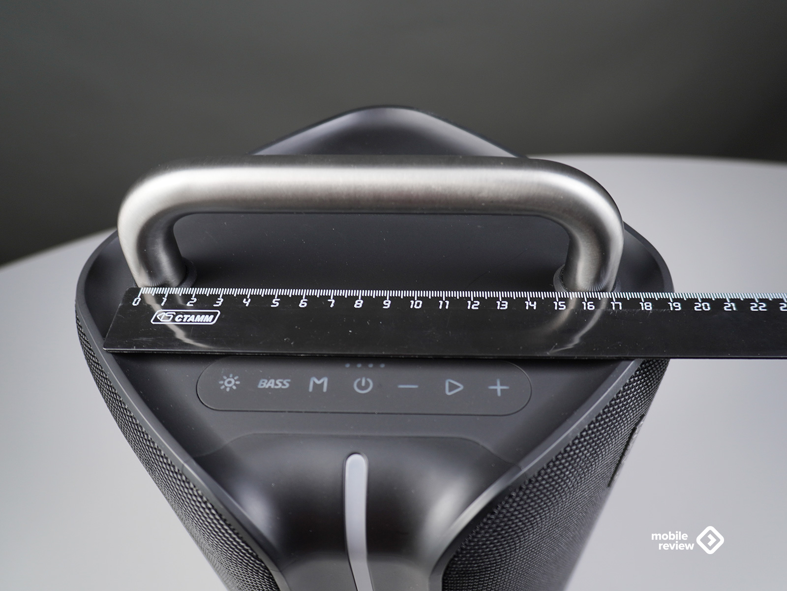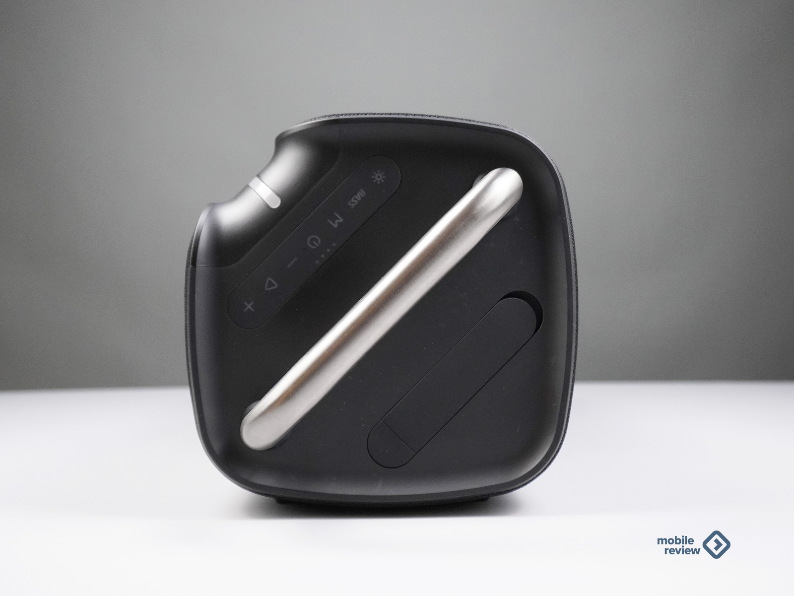 Интересно, что у «Молнии Бит» ручку решили сделать металлической. Она приятно холодит руку, но для повышения влагостойкости и уменьшения вибраций пришлось интегрировать ее в корпус колонки через резиновый уплотнитель. Насчет влаги не знаю, но с вибрациями справиться удалось.