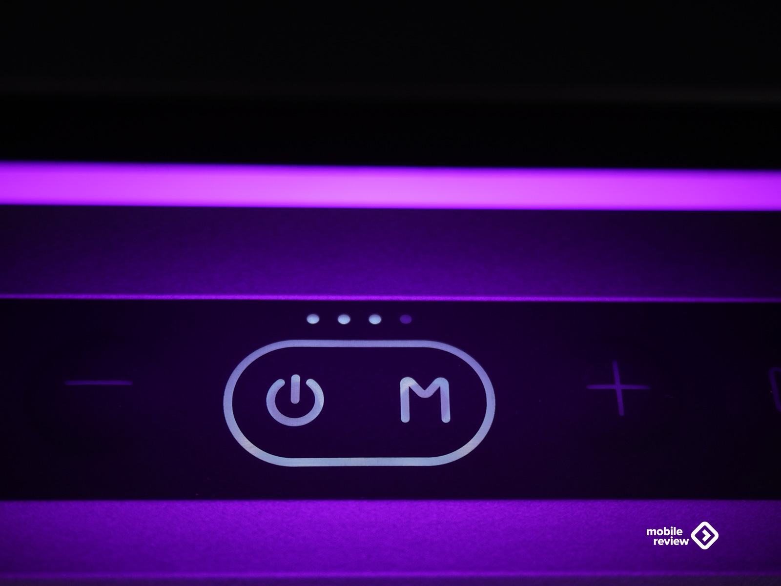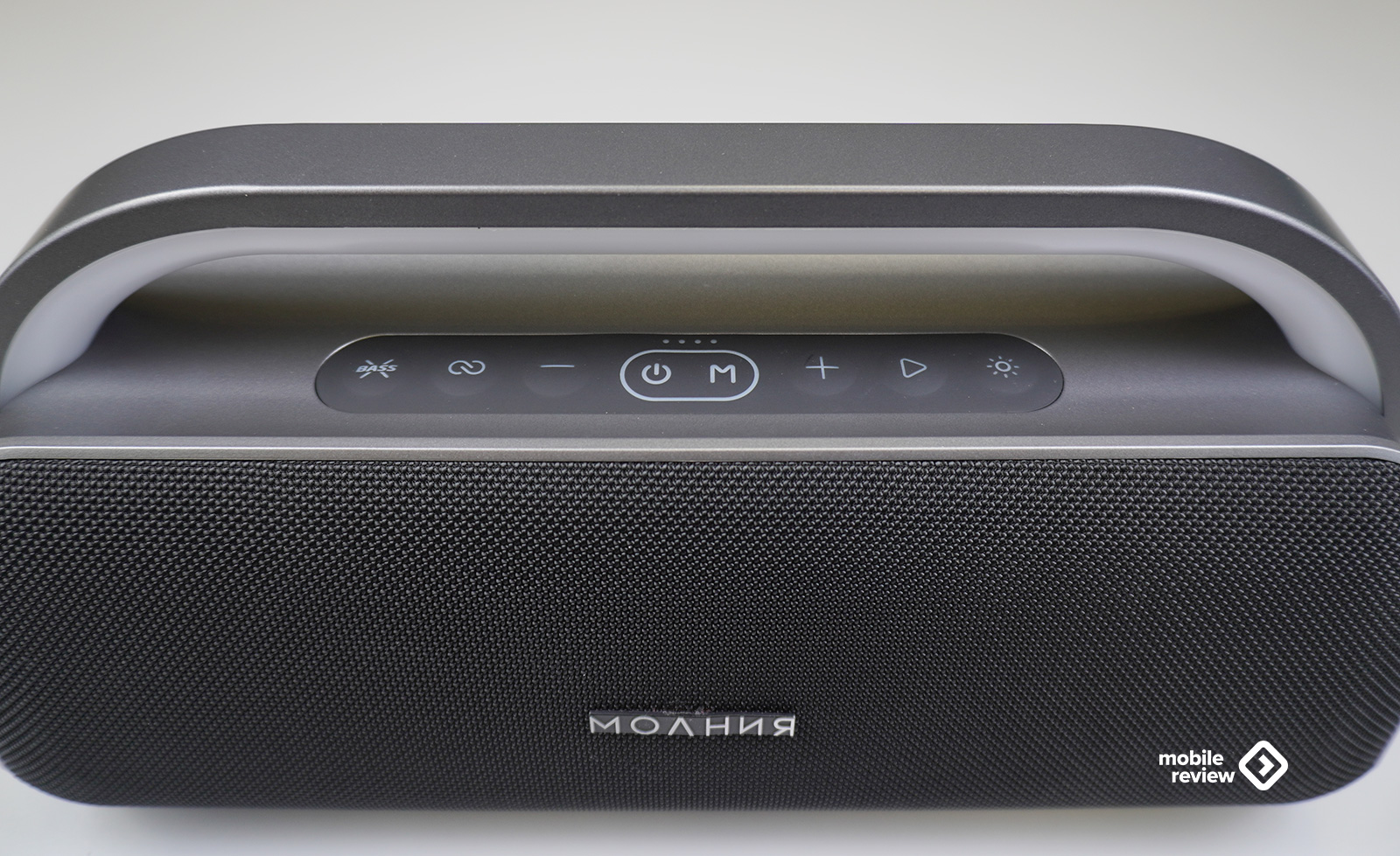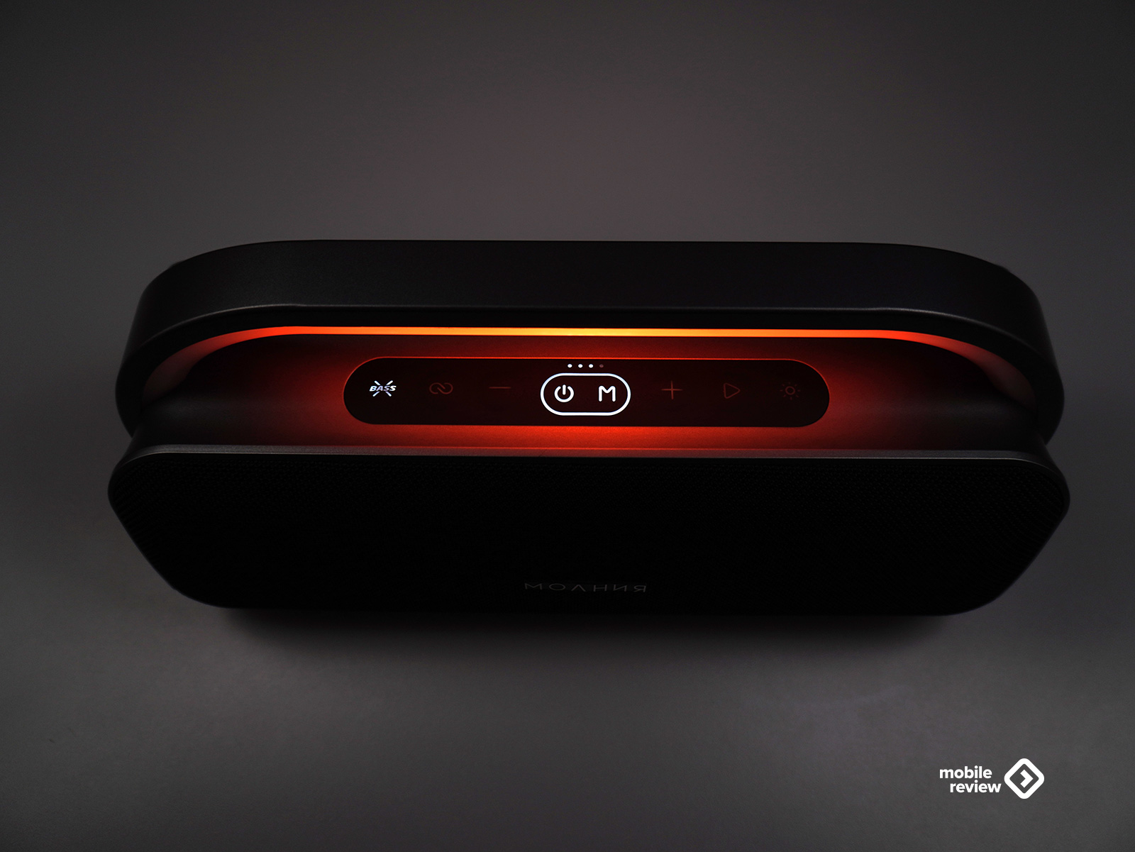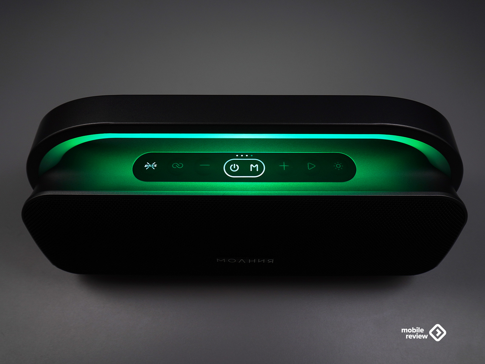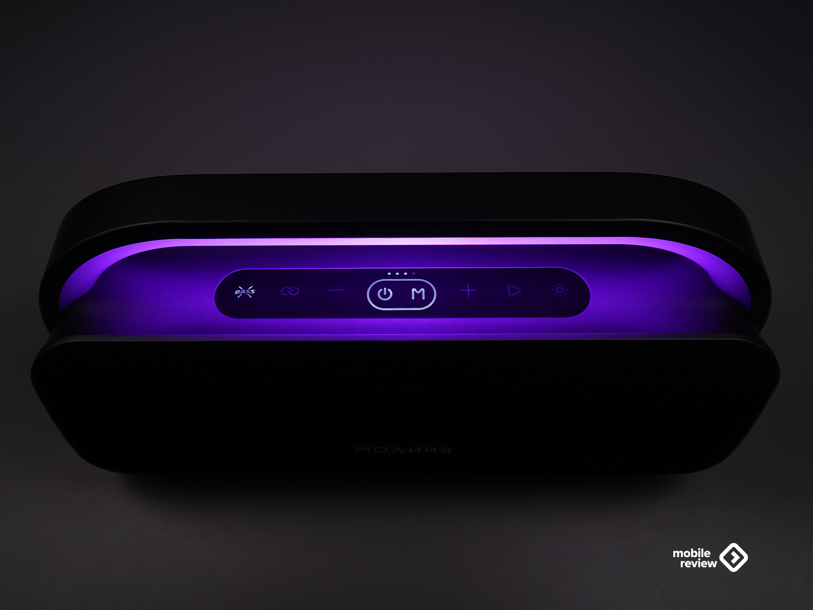 У «Молнии Бит» подсветка менее яркая, сами кнопки менее крупные и на ощупь не выпуклые, как у «Кварка», а наоборот, вогнутые. При включении светится только кнопка включения. Кроме нее подсветка имеется у кнопки усиления низких частот, которая зажигается при активации. В целом, это достаточно удобно. Но если у «Кварка» в полной темноте можно найти все кнопки благодаря RGB-подсветке, то вот у «Бита» только на ощупь, запомнив последовательность, тактильно различить пиктограммы сможет не всякий.